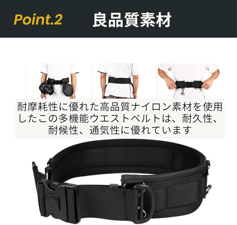 「高品質素材」耐摩耗性に優れた高品質ナイロン素材を使用したこの多機能ウエストベルトは、耐久性、耐候性、通気性に優れています。