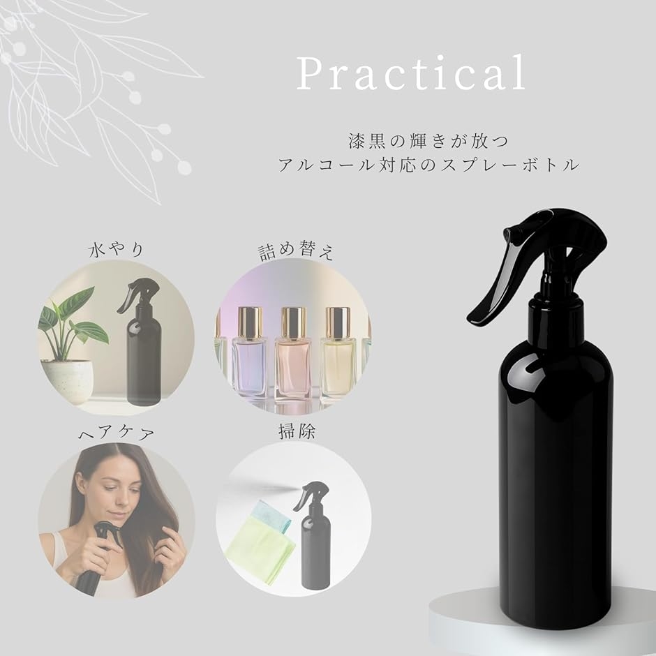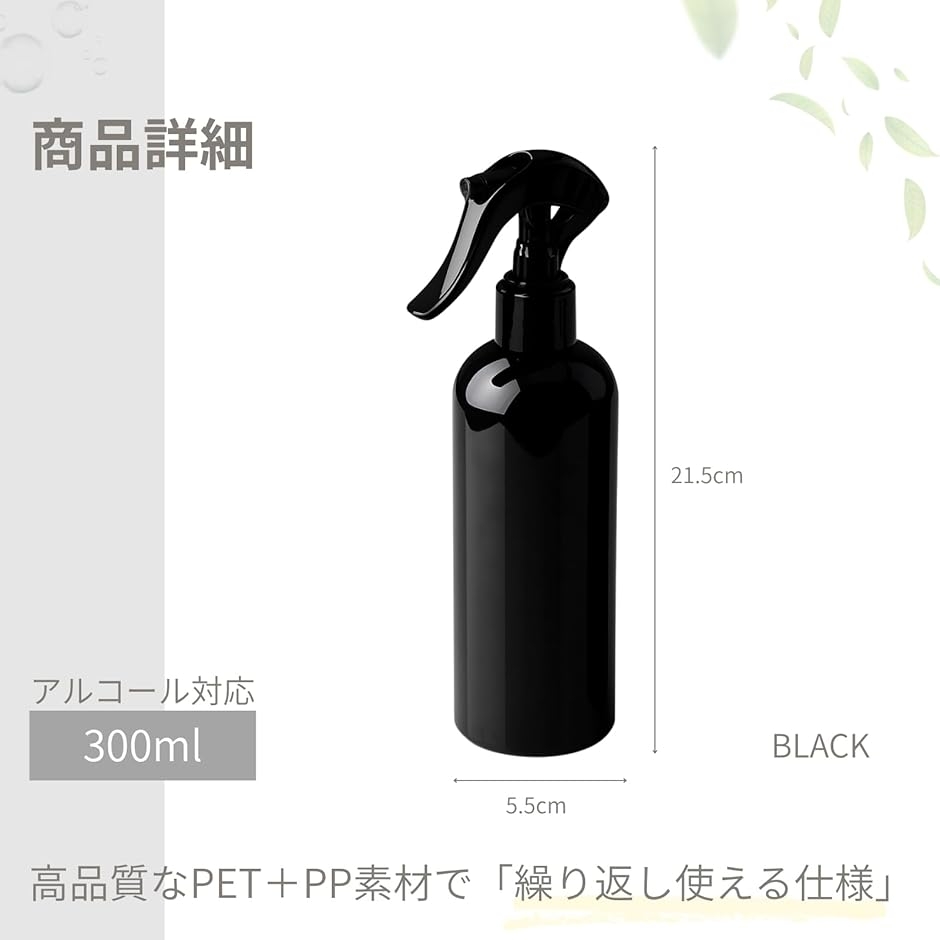 | 商品名 | スプレーボトル アルコール対応 ブラック 詰め替え用 霧吹き ヘアケア 掃除 植物用 |
