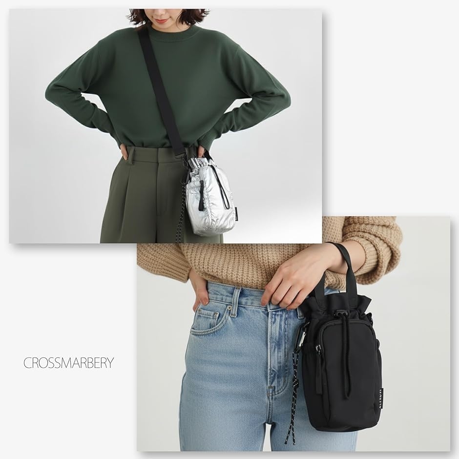 「素材」ナイロン 「仕様」開閉:巾着、内側:メッシュポケットx1、外側:オープンポケットx2、ファスナーポケットx1、カラビナx1 「サイズ」横幅:18cm、高さ:26cm、マチ:10cm、持ち手高さ:10cm、ショルダー:65cm〜124cm 「重さ」約180g * ペットボトル500mlが2本収納可能ですが形状により不可能な場合がございます。