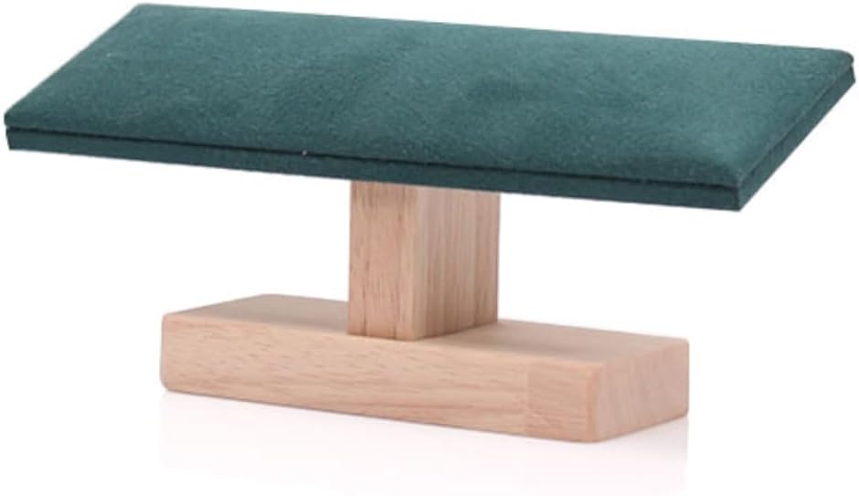 「高級感漂う天然木製スタンド」美しい天然木とスエード調クッションを組み合わせ、腕時計やアクセサリーを上品にディスプレイできます。