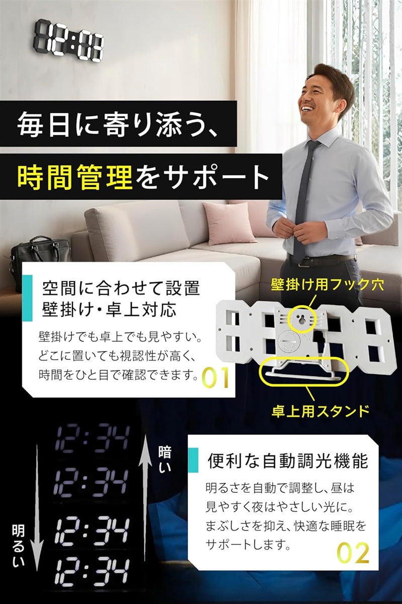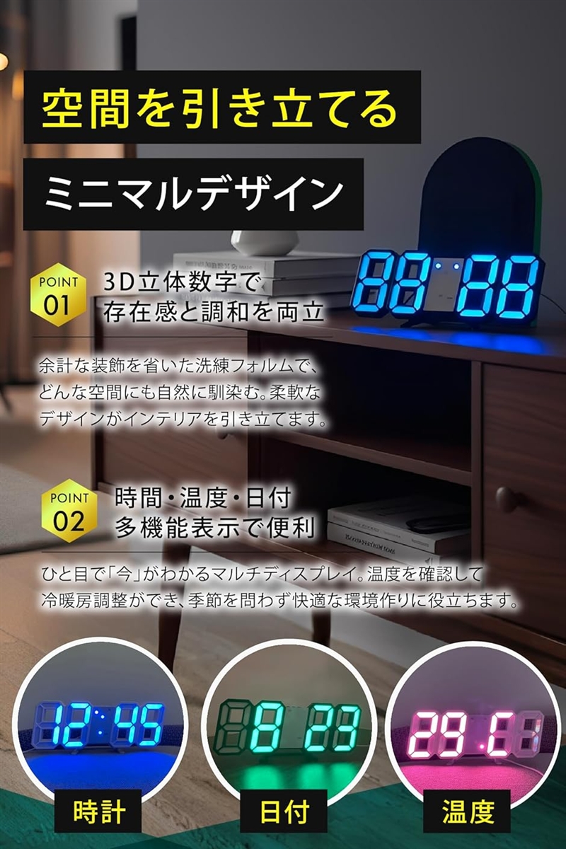 | 商品名 | 照明デザイン専門家監修 時計 デジタル 置き時計 掛け時計 壁掛け 目覚まし おしゃれ led 電池式 小型 卓上 |