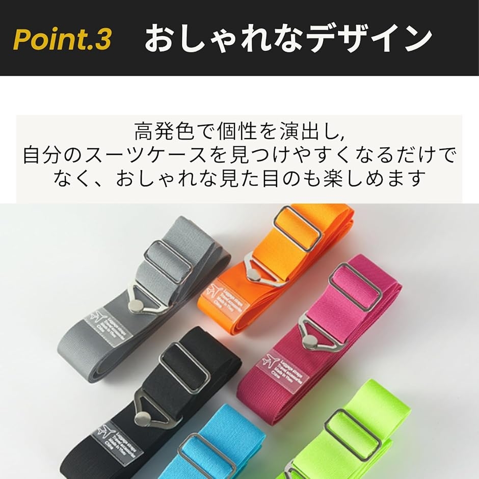 ベルトを装着することで、自分のスーツケースを見つけやすくなるだけでなく、おしゃれな見た目のも楽しめ、より快適な旅行をお楽しみいただけます。