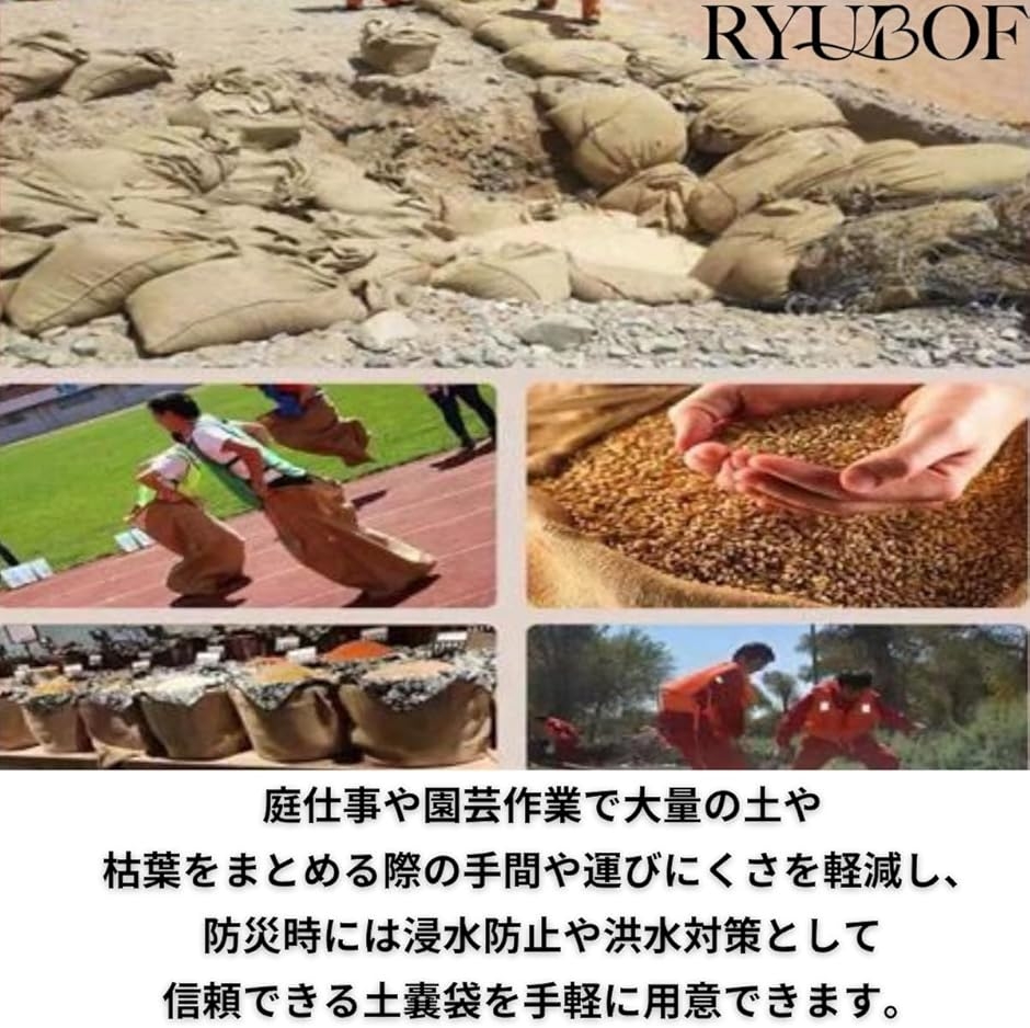 | 商品名 | RYUBOF 麻袋 土のう袋 土嚢袋 どのう袋 厚手 ガラ袋 もみがら袋 砂袋 すいのう 防災 園芸 ガーデニング 大きいサイズ 5枚セット 丈夫 再利用可能 |