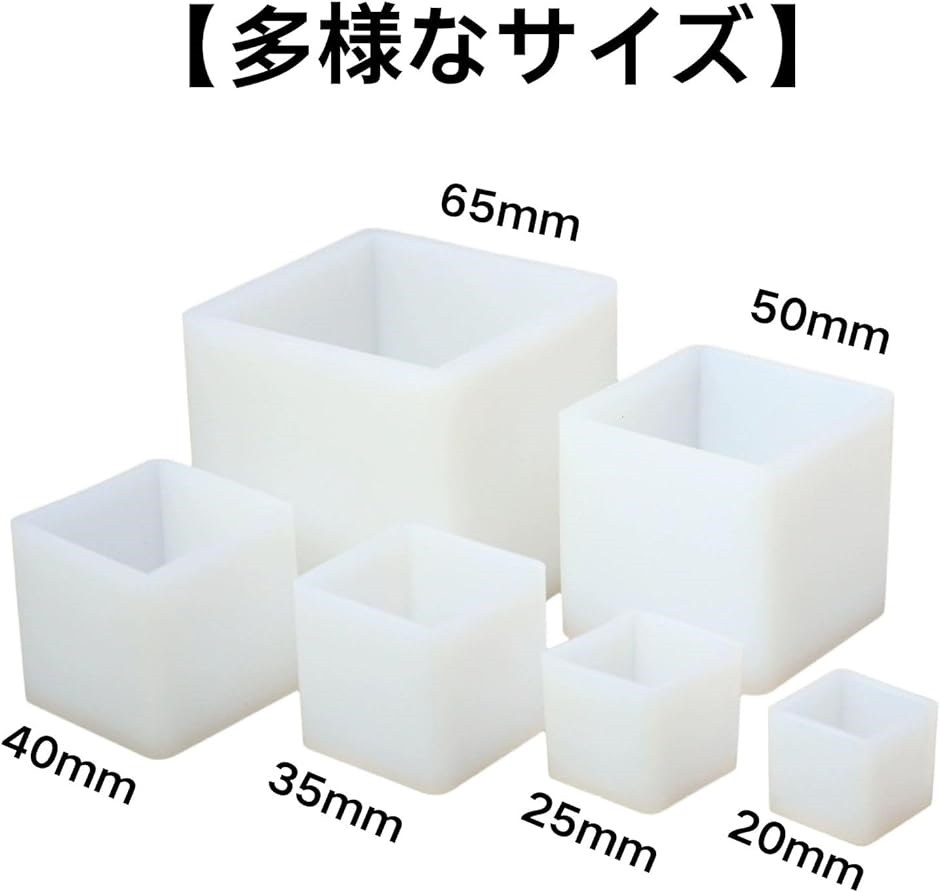 3. 「多様なサイズ」異なるサイズ(65mmx65mm、50mmx50mm、40mmx40mm、35mmx35mm、25mmx25mm、20mmx20mm)が揃っており、様々なデザインやデコレーションにも対応できます。