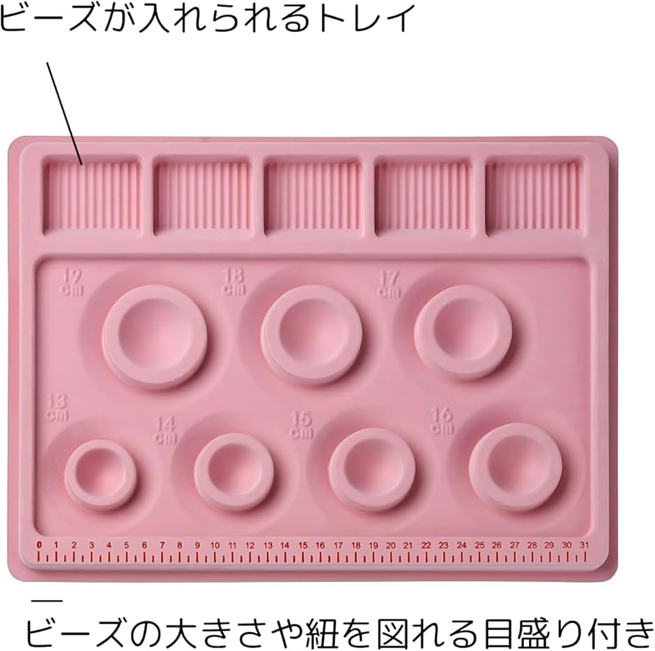 | 商品名 | ブレスレット デザインボード 13cm〜19cm対応 ビーズアクセサリー用 作業トレー ハンドメイド 初心者向け 上部に5つビーズおきもあります。 |