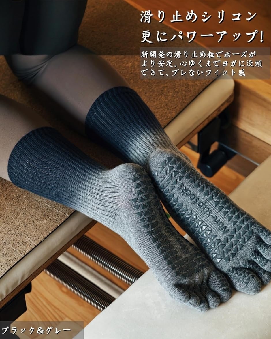 さらに各指先まで独立した滑り止め加工で、従来のヨガソックスよりグリップ力や安定性がアップ。