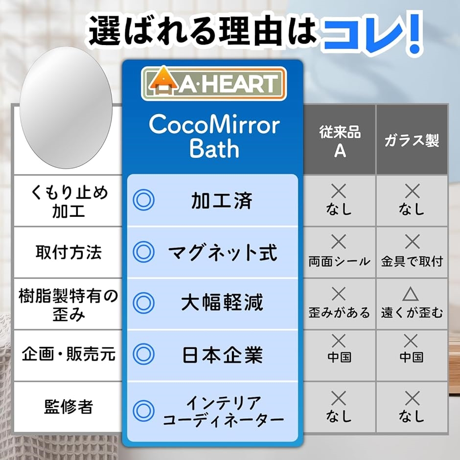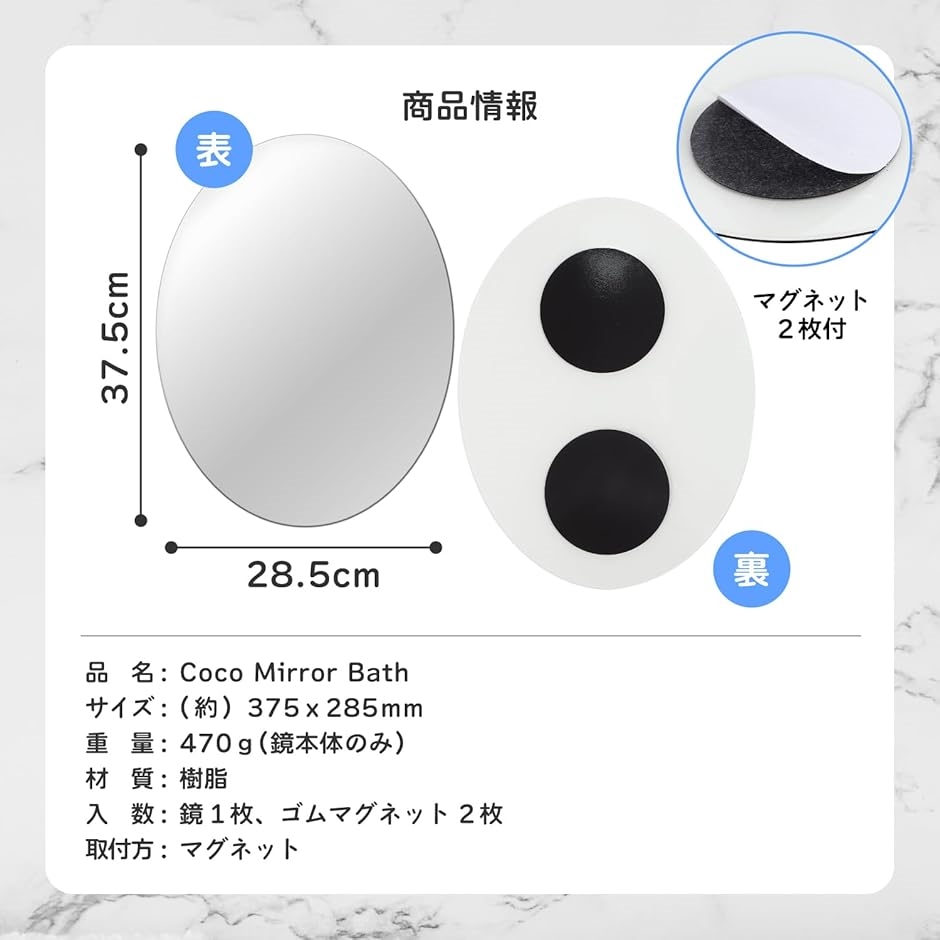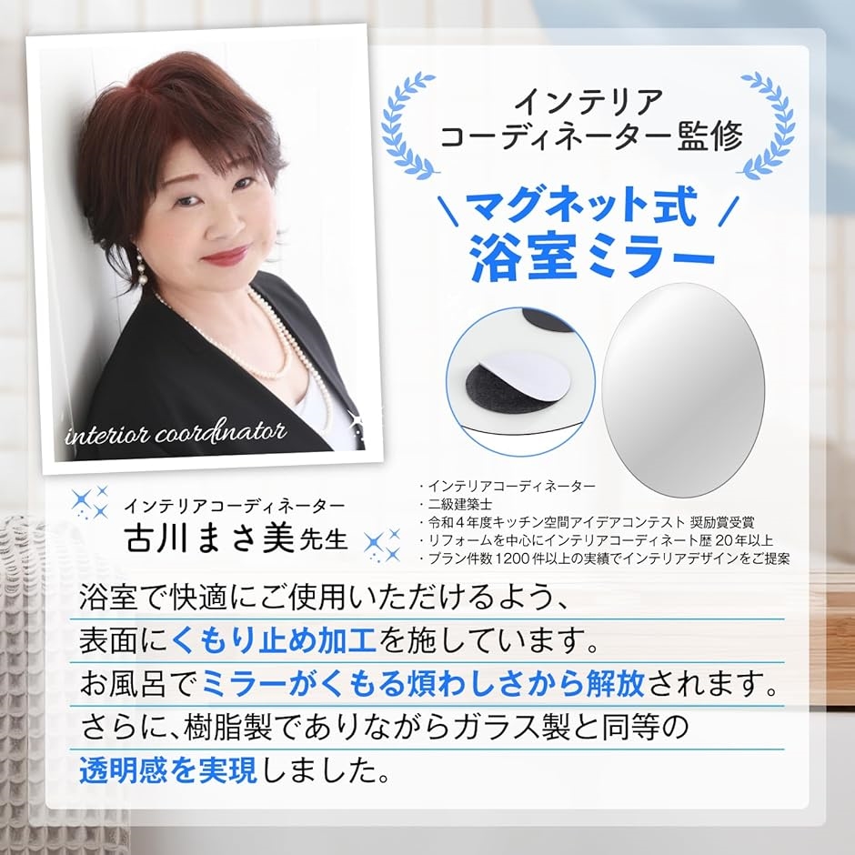 | 商品名 | 専門家監修/クリアな映像 浴室鏡 お風呂鏡 風呂 浴室 お風呂 鏡 くもりにくい 歪まない マグネット ミラー オーバル |