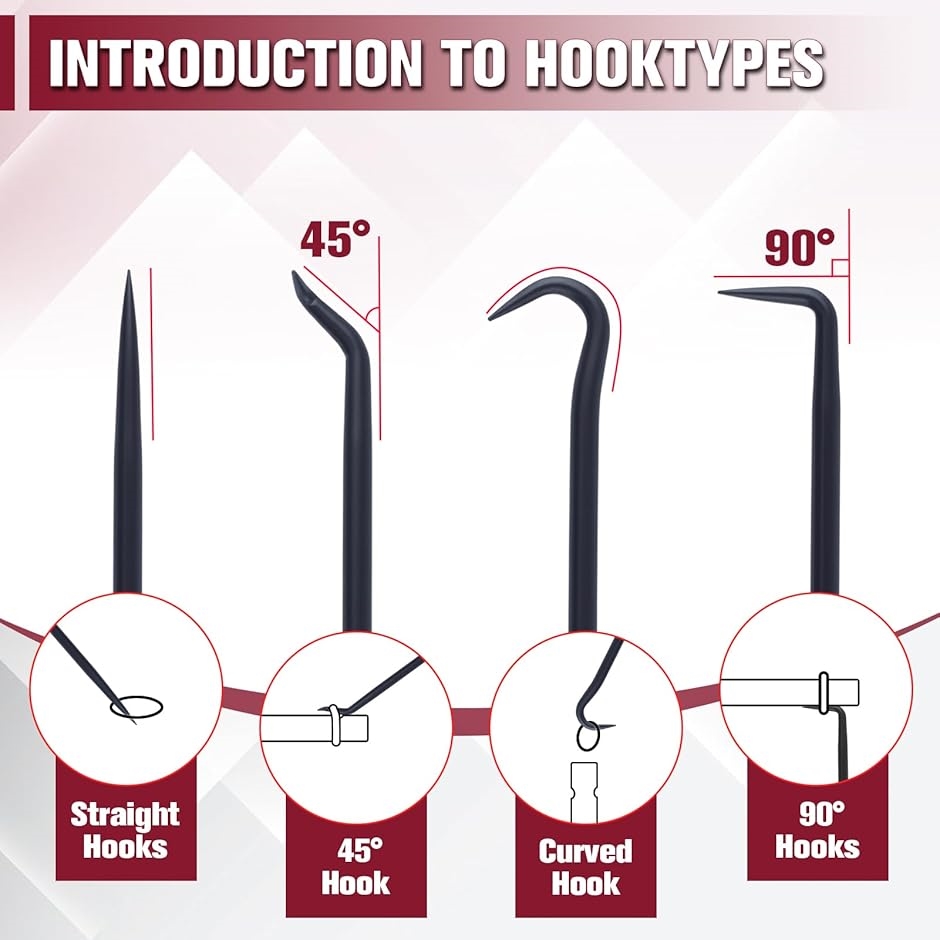 デュアルヘッドデザイン:特別なデュアルヘッドデザインで、90°フック、ストレートフック、45°フック、カーブフックなど4種類のフックがあり、日常生活の様々なニーズを満たすのに十分で、車の小さな部品をよりよく修理するのに役立ちます。