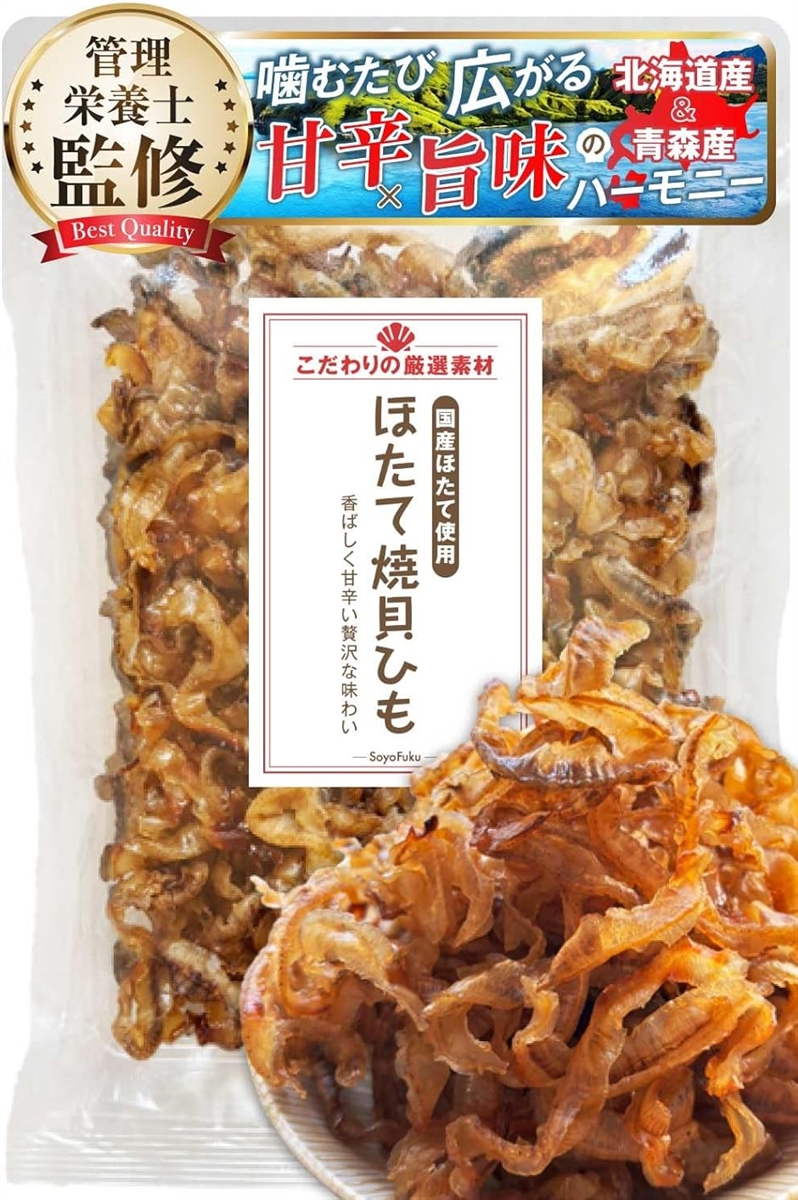 | 商品名 | 北海道フードマイスターx管理栄養士監修 ホタテ貝ひも 300g 甘みとピリ辛がクセになる北海道と青森産の国産ほたてを使用おつまみ おやつ そよ福商店 |