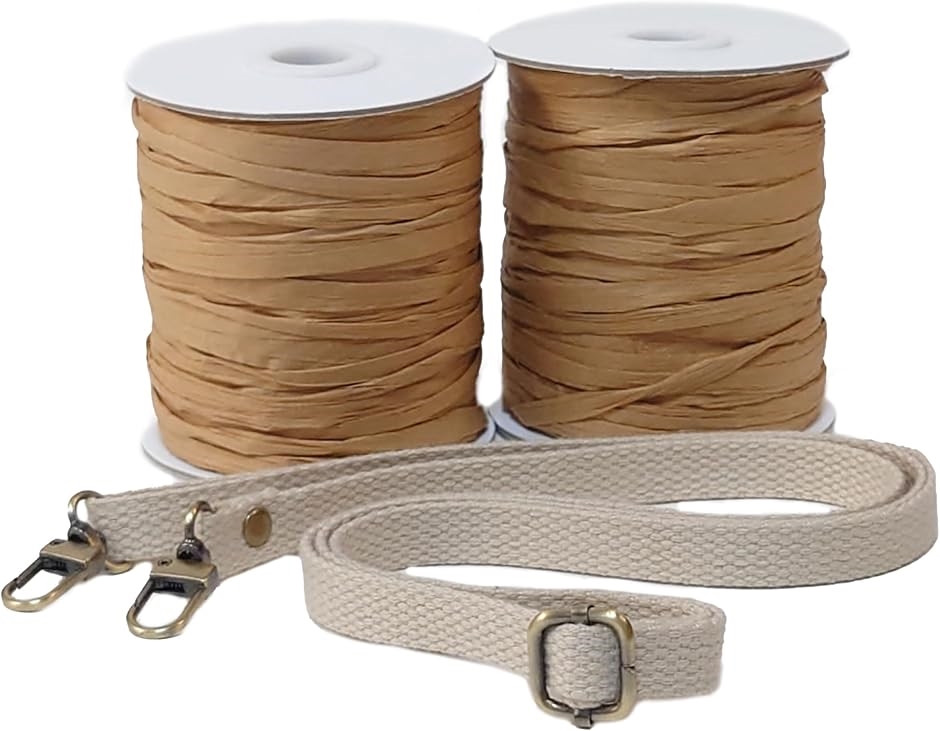 「ラフィアヤーン」40g(80m)x2個 素材:ラフィアレーヨン 「ショルダーベルト」幅:12mm 長さ:73〜135cm*調節可 素材:コットン、合金 生産国:中国