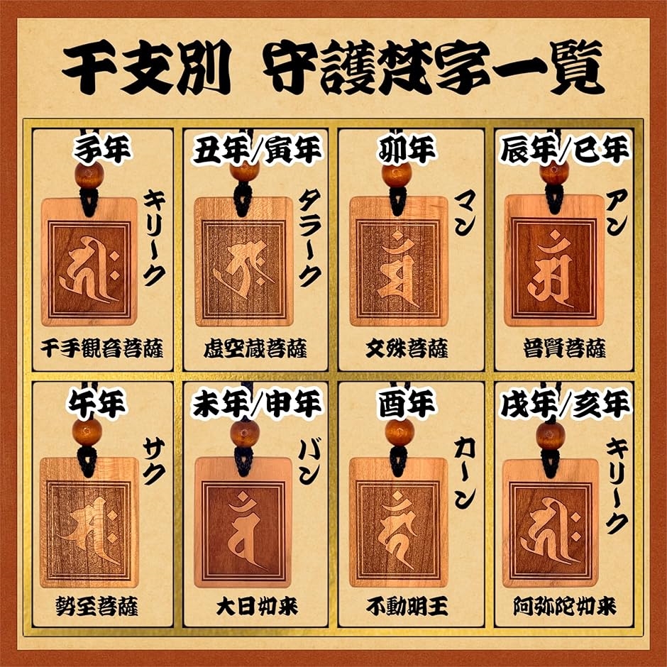 | 商品名 | 守護梵字木札 御守り 干支別 国産桜使用 52x40mm 喧嘩札 お祭り 木札ネックレス 神社 職人手仕上げ 日本産 |