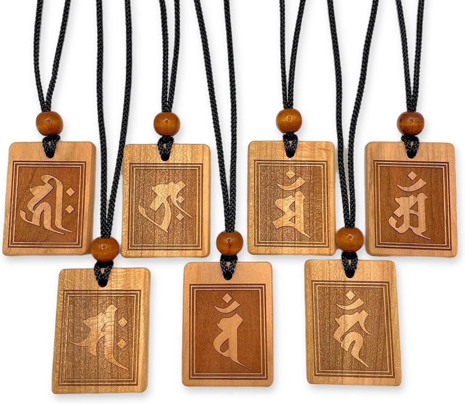 木札の素材には、温もりと力強さを兼ね備えた国産桜を使用し、 それぞれの梵字と仏様の力を引き立てるため、 紐色は「黒」で統一。