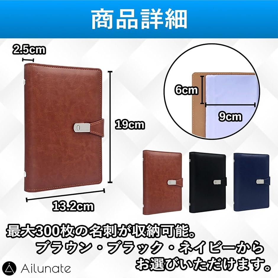 | 商品名 | 名刺ホルダー 名刺入れ 大容量 名刺ファイル PUレザー 革 300枚収納 |