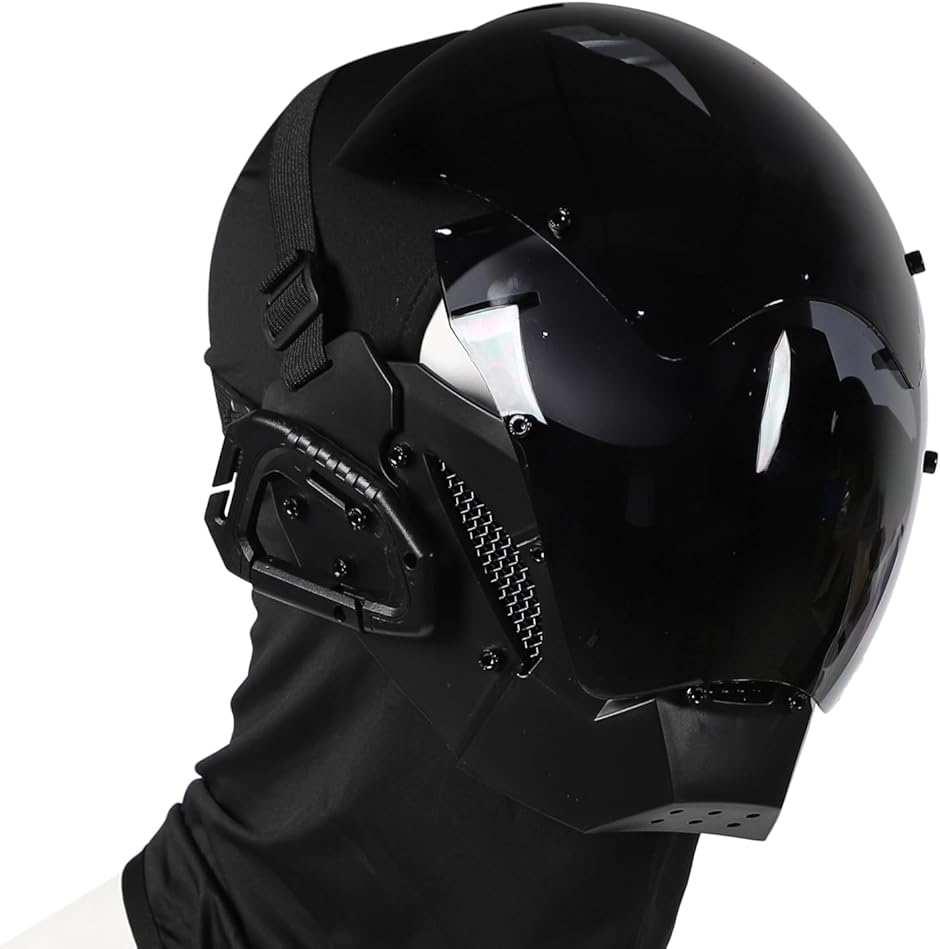 重量:マスクのみ 約 400g モノトーン の ブラック カラー と独特な形状で、まるで未来の ヒーロー のような印象を与えるフルフェイスマスク。