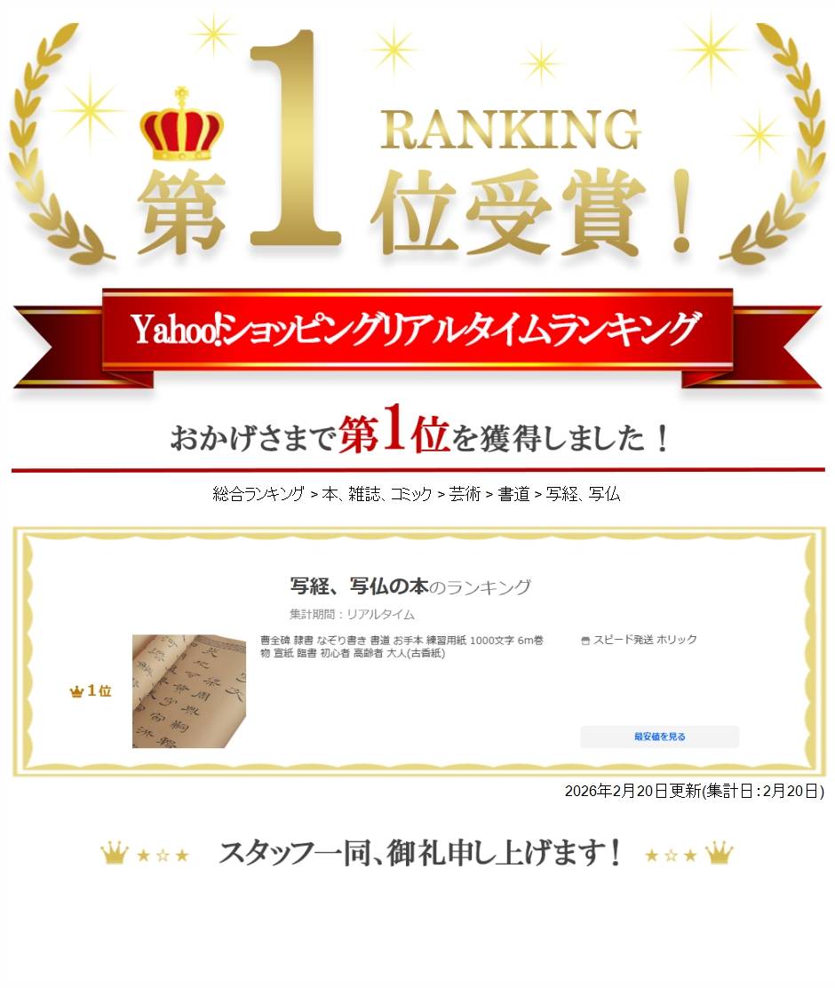 | 商品名 | 曹全碑 隷書 なぞり書き 書道 お手本 練習用紙 1000文字 6m巻物 宣紙 臨書 初心者 高齢者 大人 |