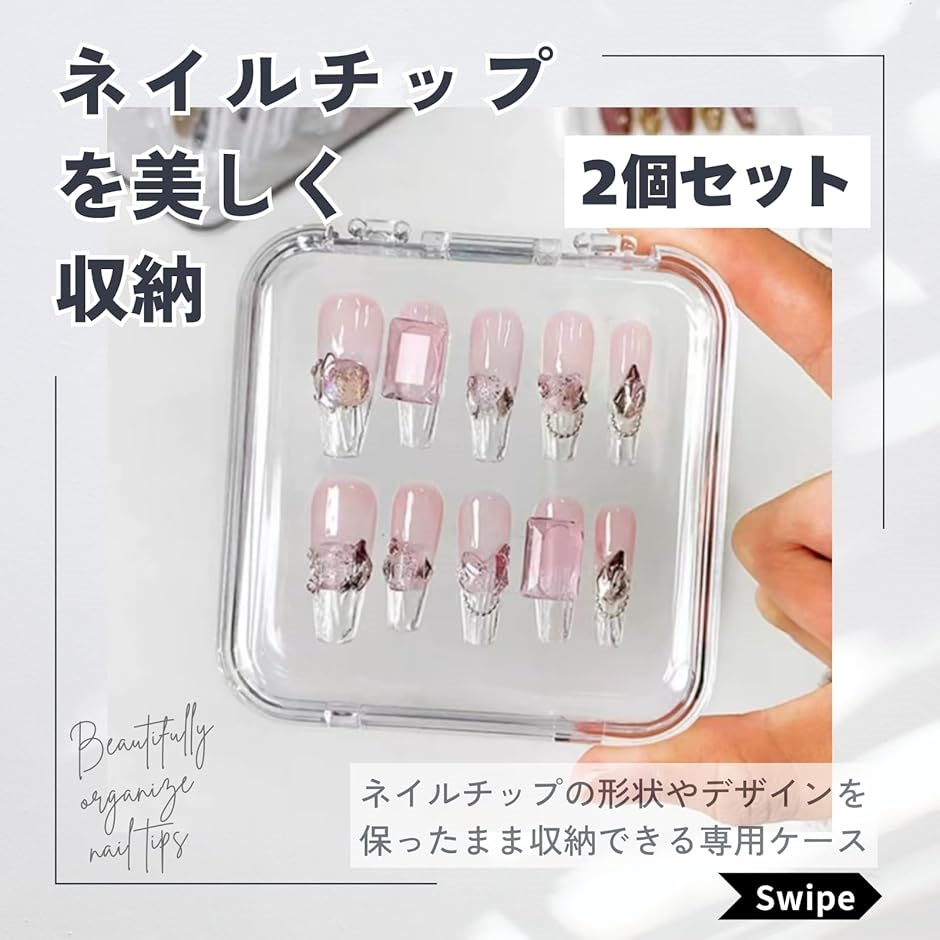 | 商品名 | ネイルチップ ケース 2個セット 収納 ストレージボックス ディスプレイ つけ爪 家庭用 ホルダー 固定 |