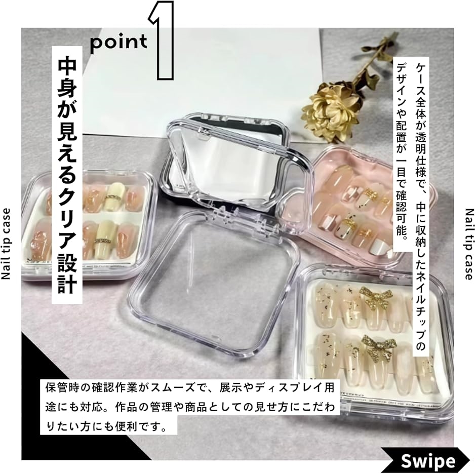 「ネイルチップを美しく収納」 ネイルチップの形状やデザインを保ったまま収納できる専用ケース2個セット。