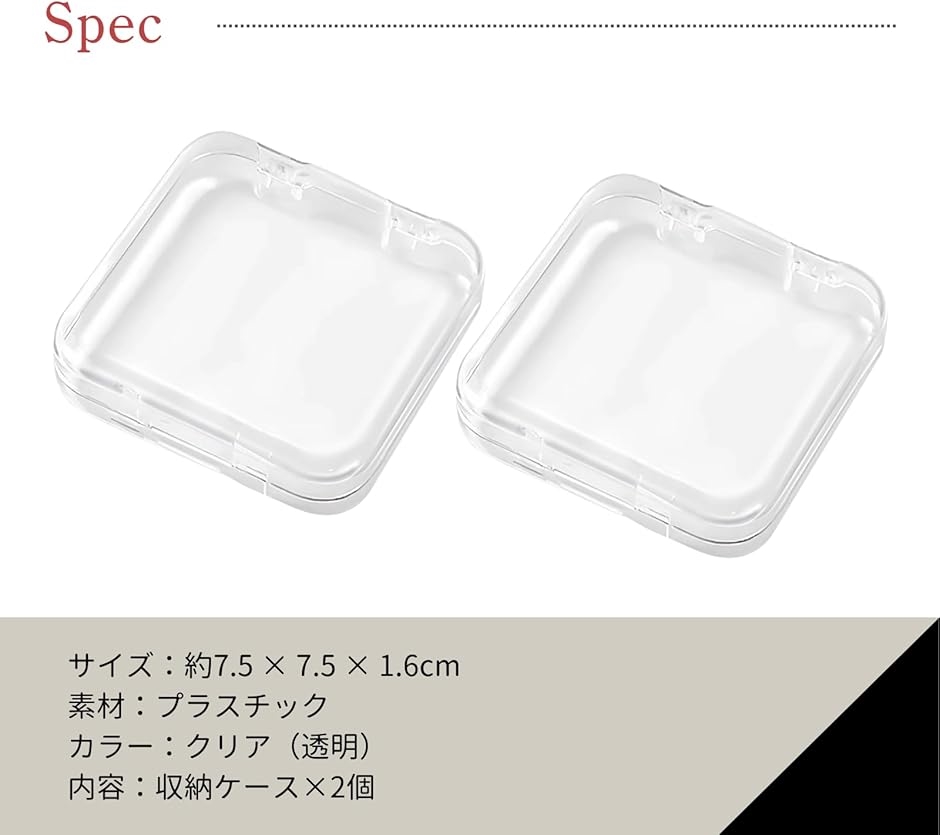 「商品詳細」 商品名:ネイルチップ ケース 2個セット サイズ:約7.5 x 7.5 x 1.6cm 素材:プラスチック カラー:クリア(透明) 内容:収納ケースx2個