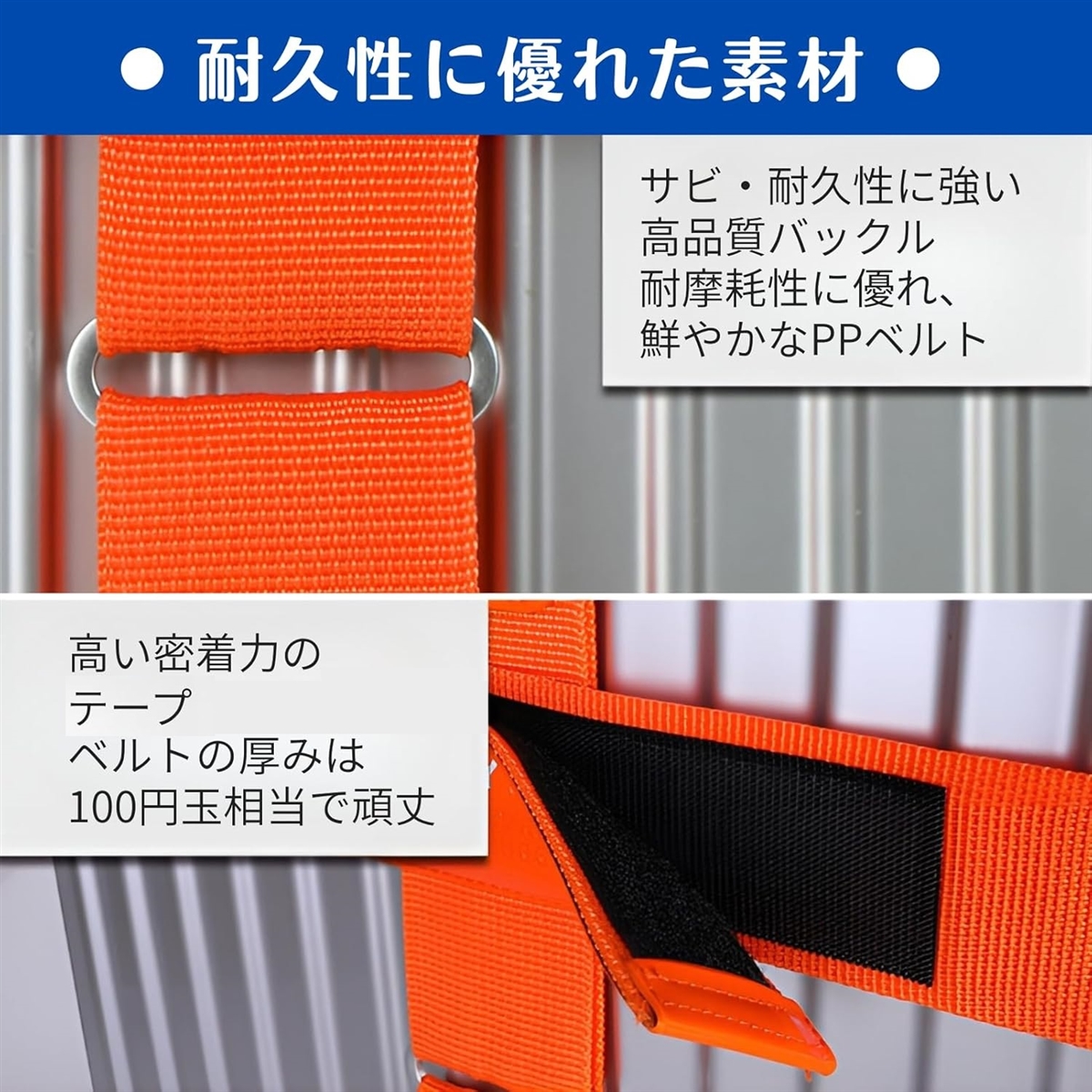 「耐久性に優れた素材」強力な粘着力と耐久性のある面ファスナーで、キャリーケースをしっかりと固定し、空港での手荒な扱いや移動中の衝撃から中身を守ります。