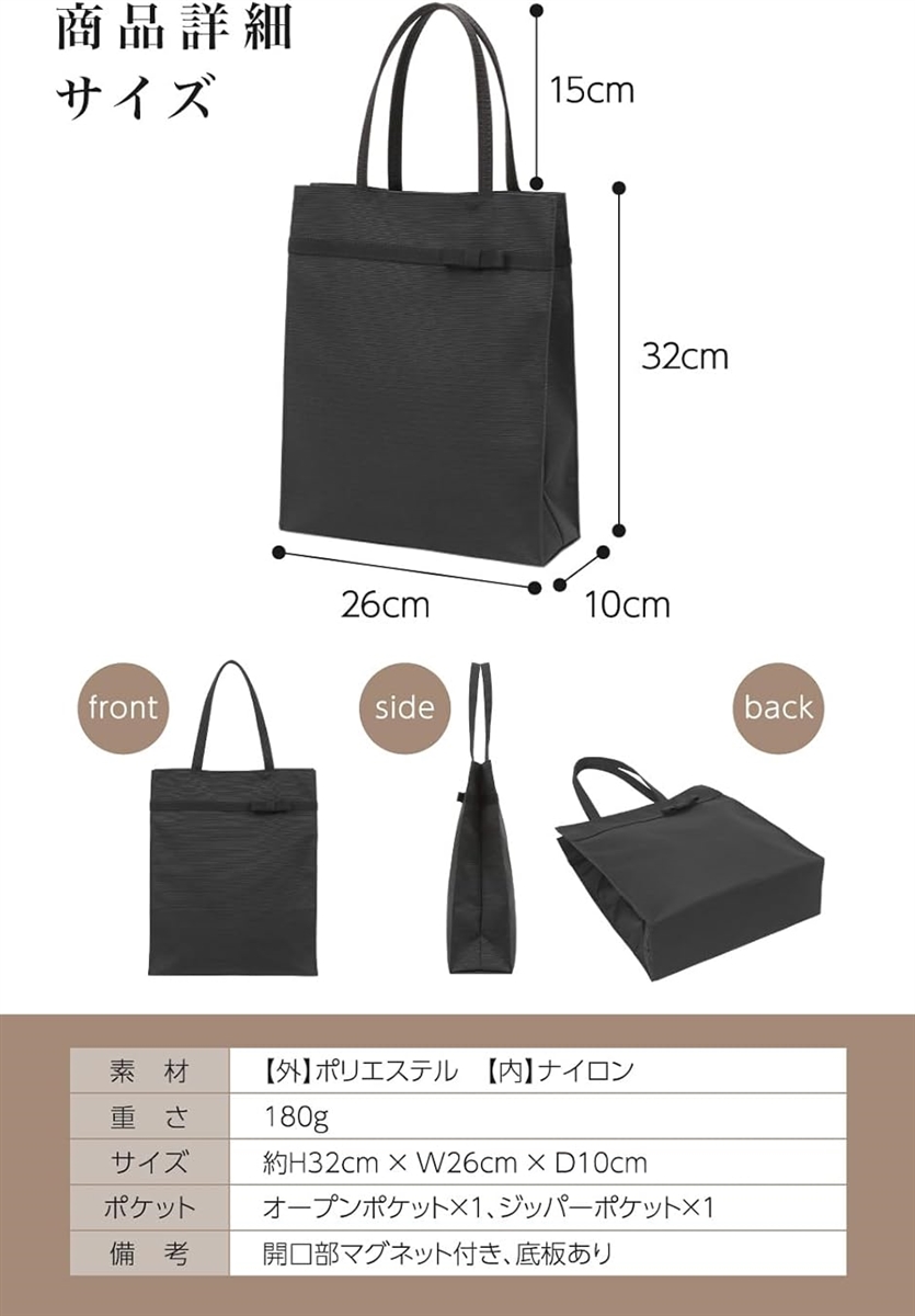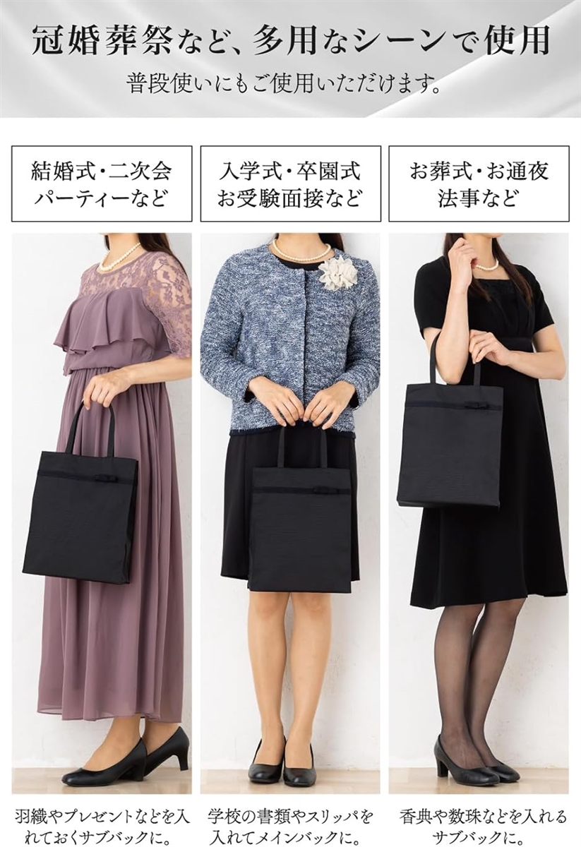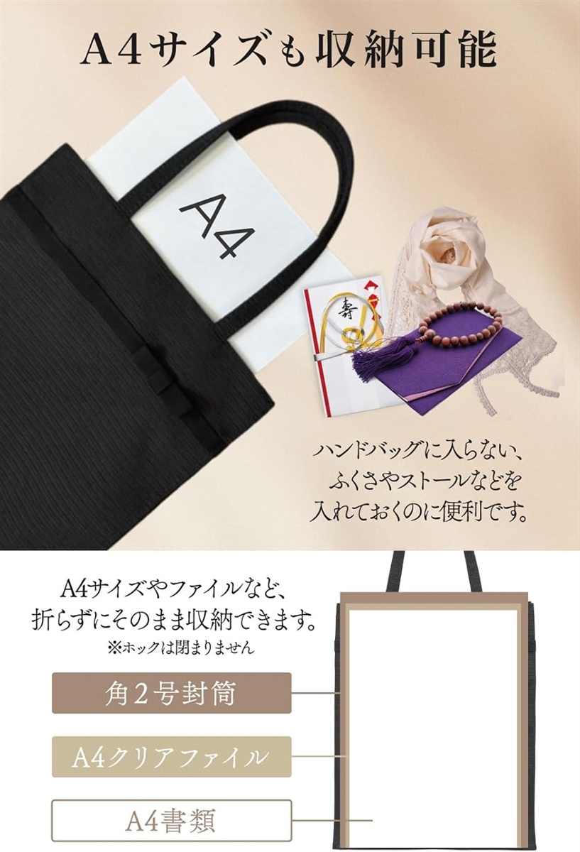 | 商品名 | ミウォルナ サブバッグ フォーマル トートバッグ A4 冠婚葬祭 結婚式 葬式 葬儀用 喪服バッグ 慶弔両用 レディース リボン |