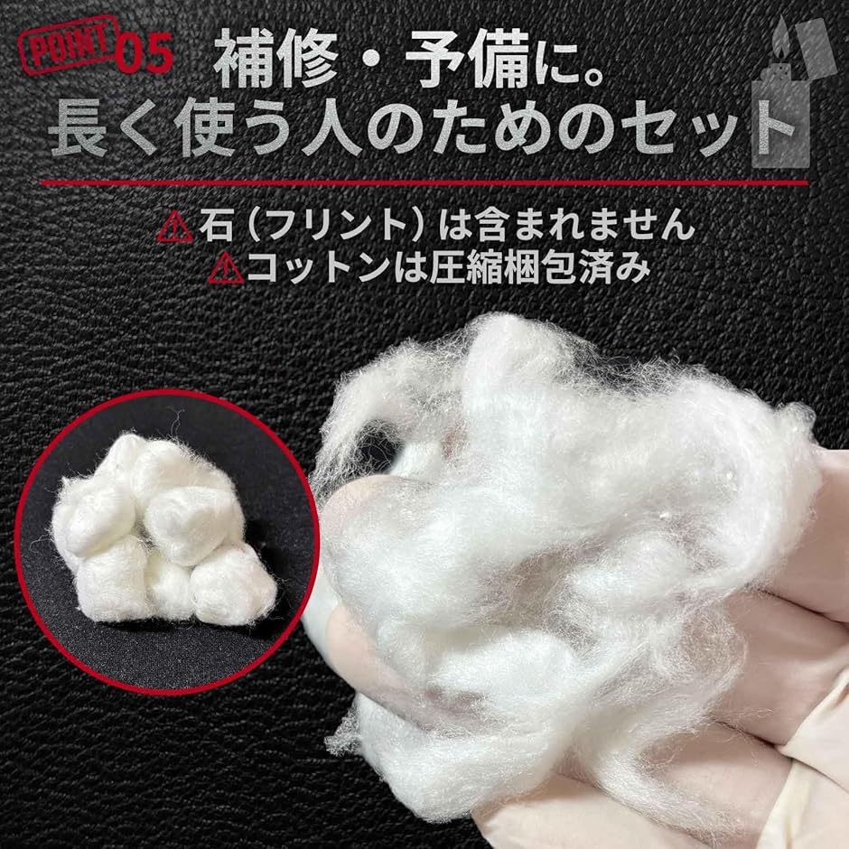 石(フリント)は含まれないため、必要に応じて別途ご用意ください。