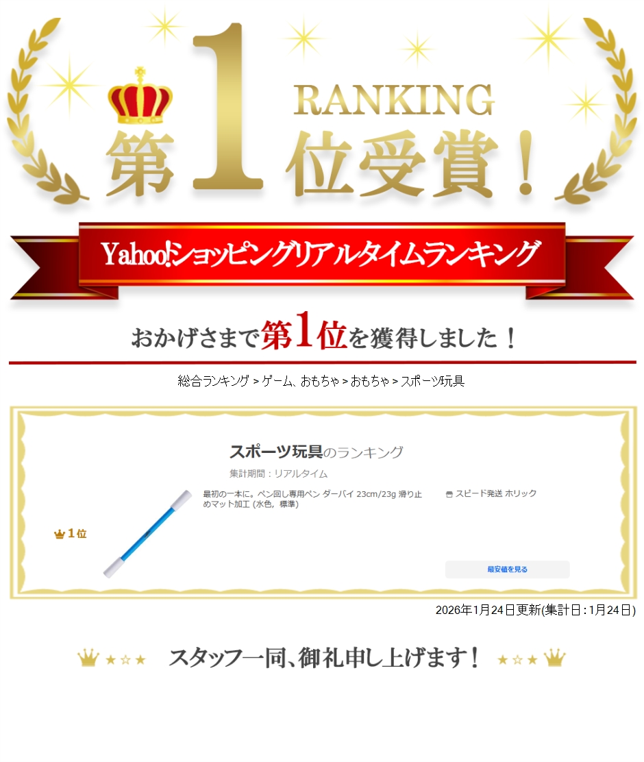 | 商品名 | 最初の一本に。ペン回し専用ペン ダーバイ 23cm/23g 滑り止めマット加工 |