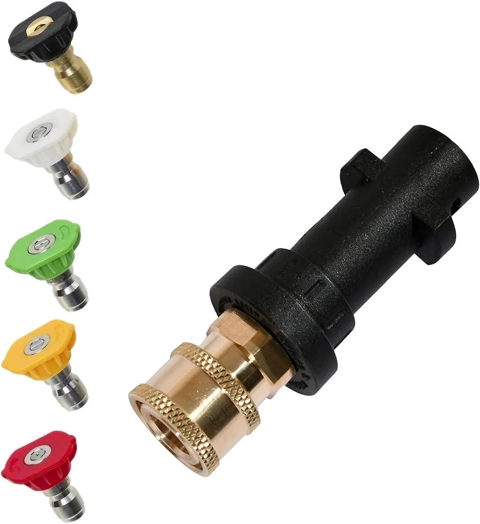| 商品名 | 高圧洗浄機 ノズルアダプター セット 1/4インチ ケルヒャー K2-K7対応 5種チップ付 ショートサイズ 洗車 外壁 床清掃 |