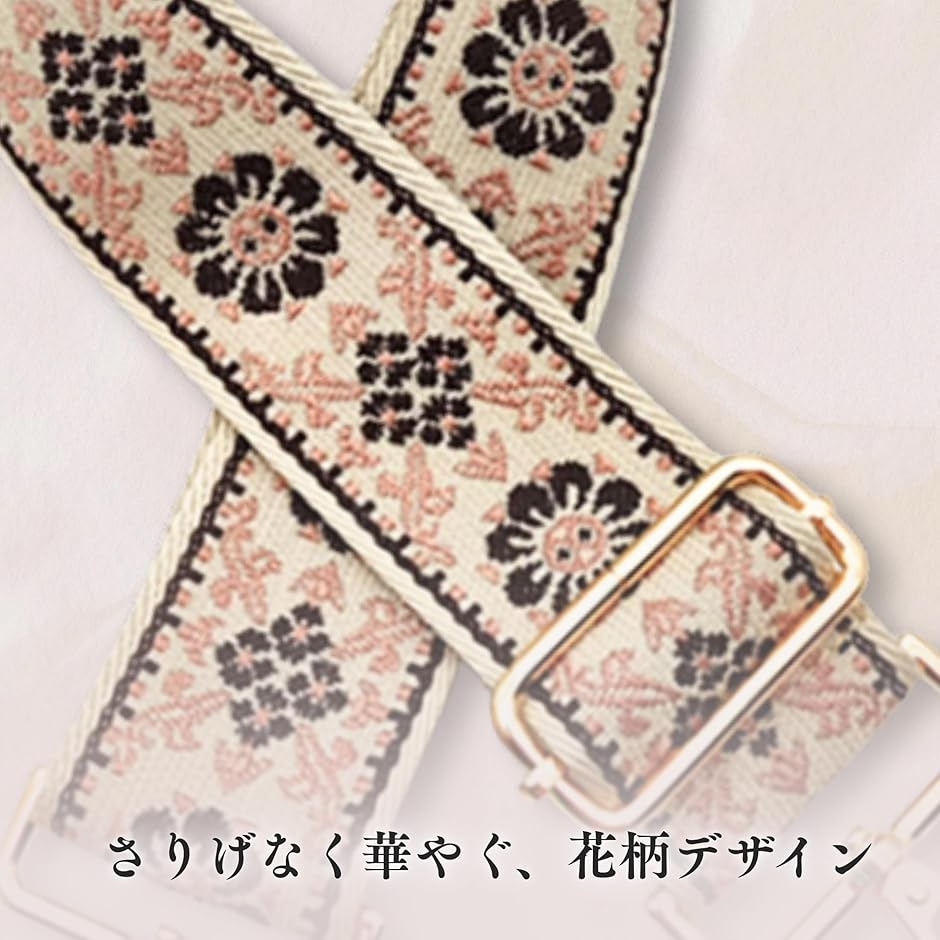 この花柄ショルダーストラップは、バッグやスマホ、カメラをおしゃれにアップグレードします。