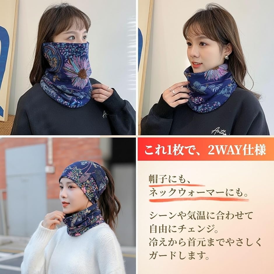 帽子としてはもちろん、ネックウォーマーとしても使える2WAY仕様で、春・秋・冬を通して心地よくお使いいただけます。