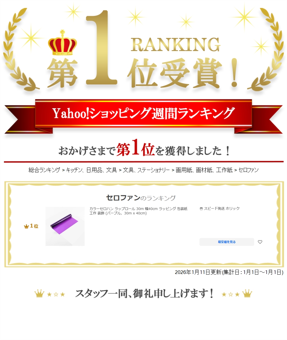 | 商品名 | カラーセロハン ラップロール 30m 幅40cm ラッピング 包装紙 工作 装飾 |