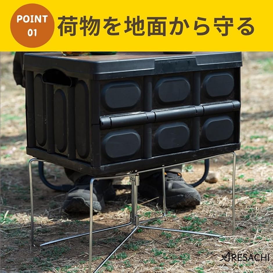 「クーラーボックスや荷物を地面から守る」キャンプ場やアウトドアで、地面に直接置きたくない荷物やクーラーボックスを支えるためのスタンドです。