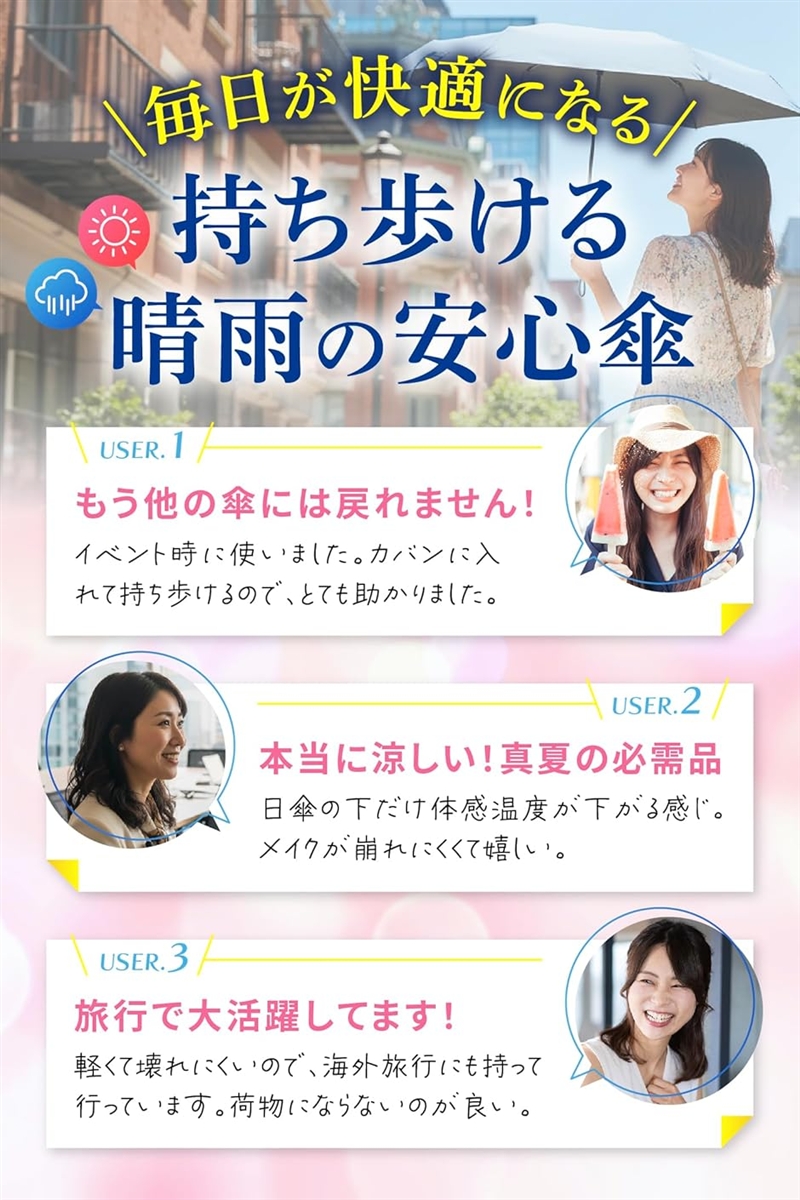 | 商品名 | 美肌研究家監修 折りたたみ傘 軽量 晴雨兼用 メンズ 形状記憶 大きいサイズ UVカット 自動開閉対応 |