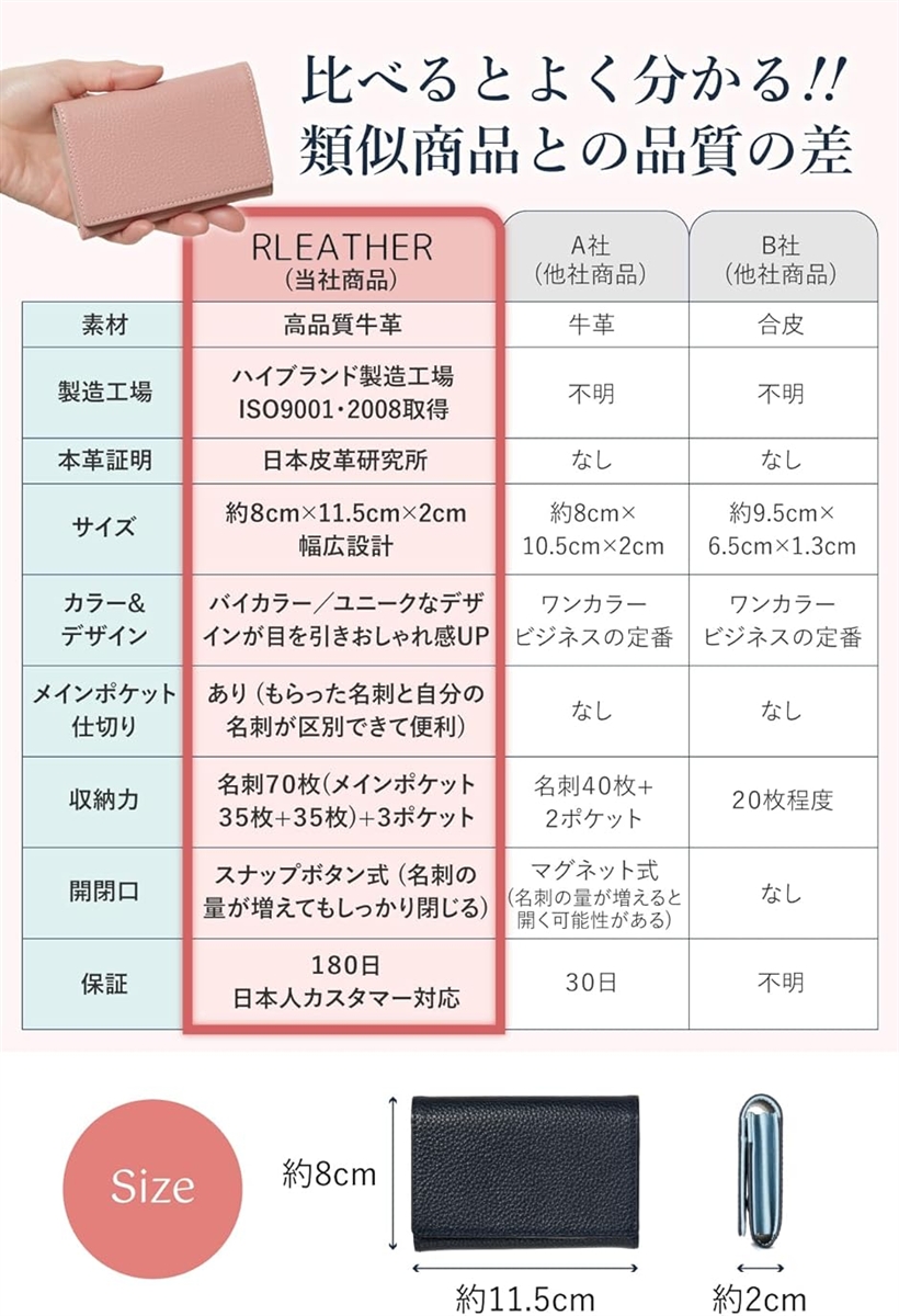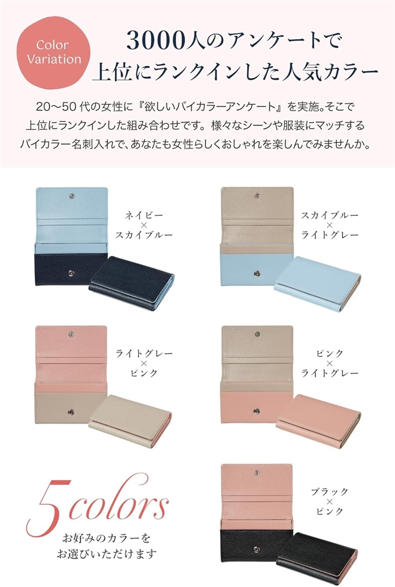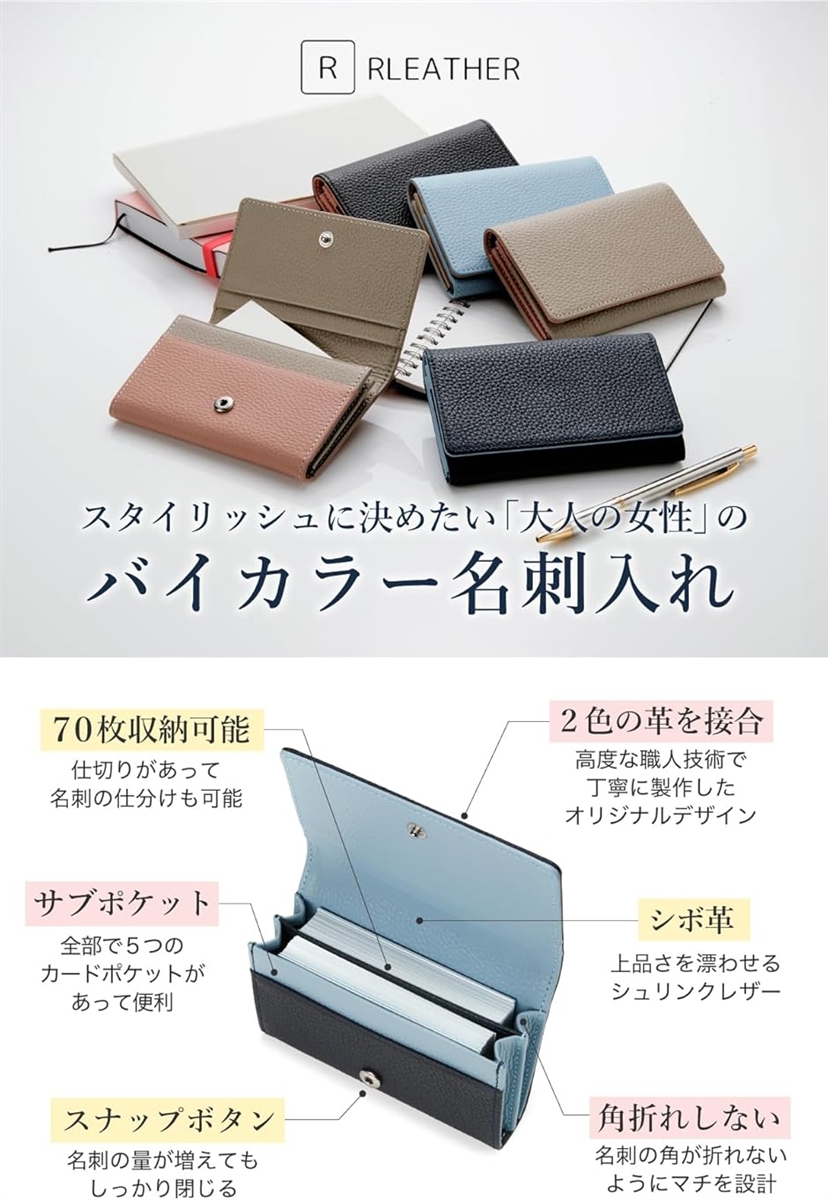 | 商品名 | 名刺入れ レディース 本革 大容量 70枚収納 バイカラー 上質シュリンクレザー おしゃれな仕切り付きカードケース 就職祝い ギフト |