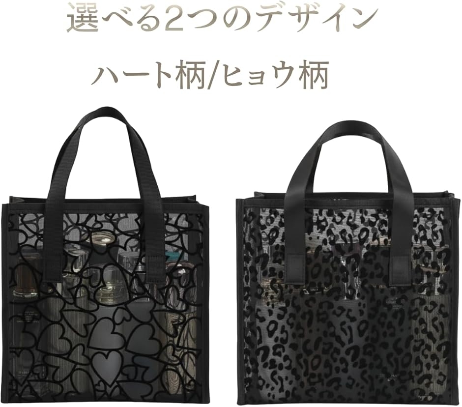 無地のデザインが多い中、可愛らしいハート柄とヒョウ柄で差別化。通気性の良いメッシュ素材で、濡れた物の水切りにも便利です。
