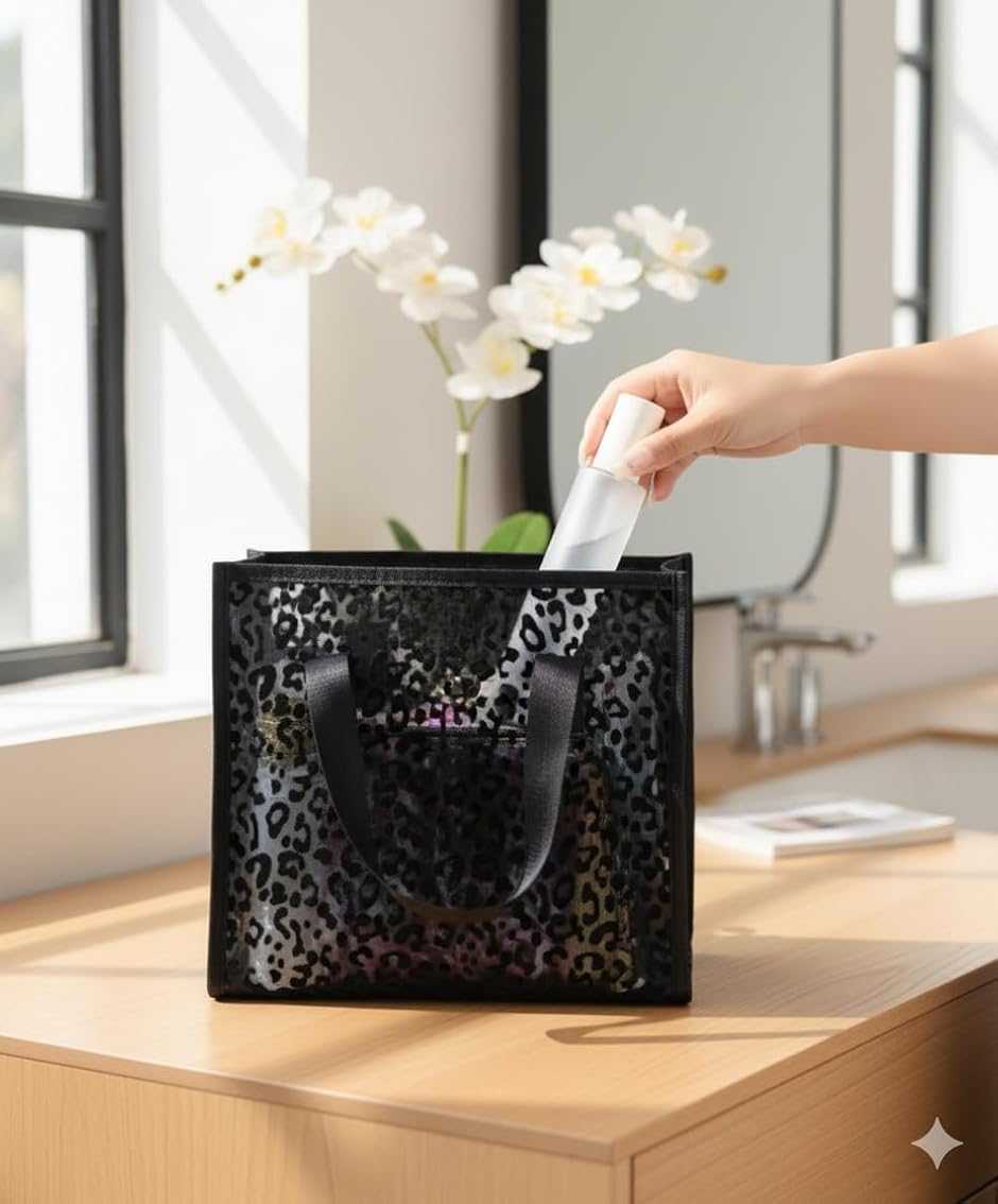 丈夫な持ち手と実用的なサイズで、洗面用具やお風呂セットをすっきりと収納できます。