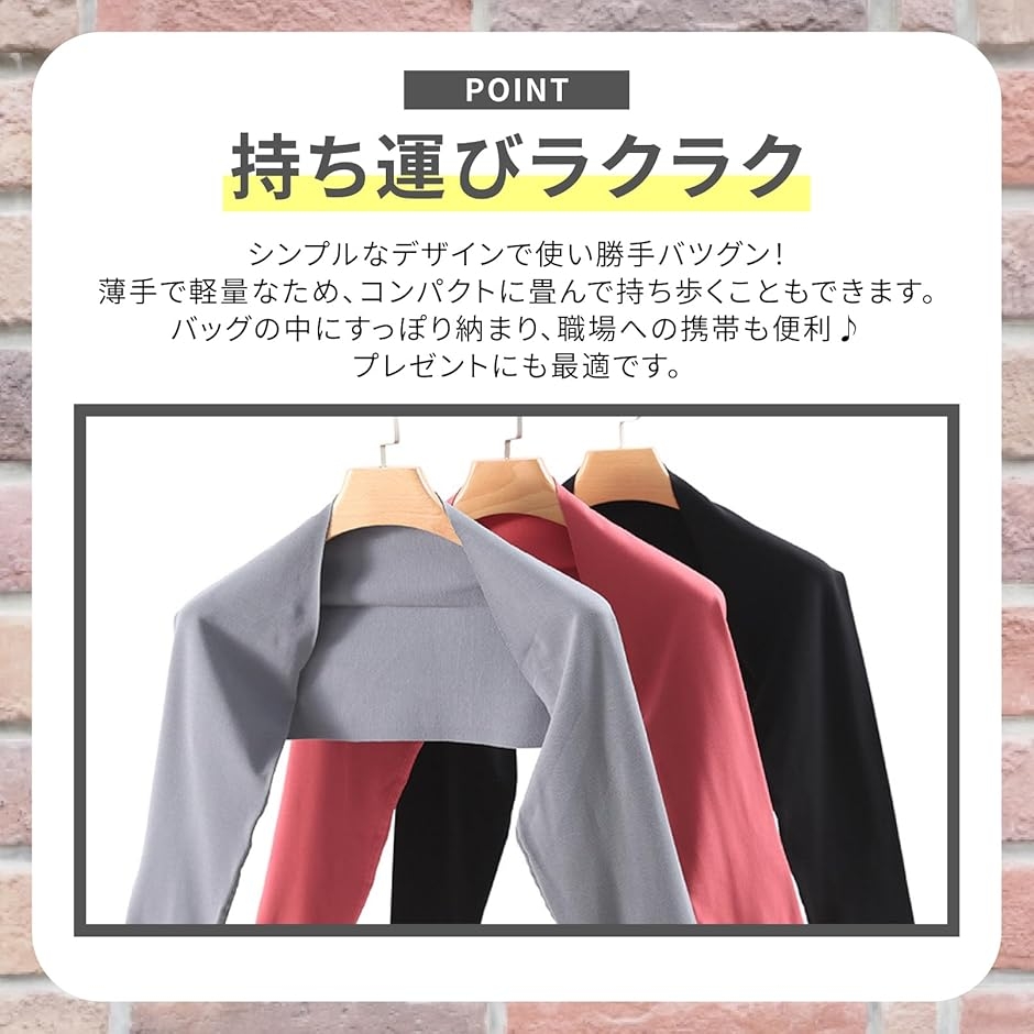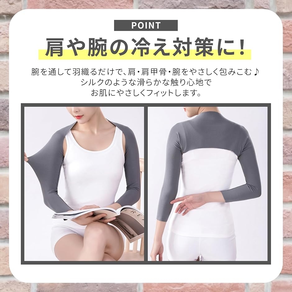 腕を通して羽織るだけで、肩・肩甲骨・腕をやさしく包みこむ。