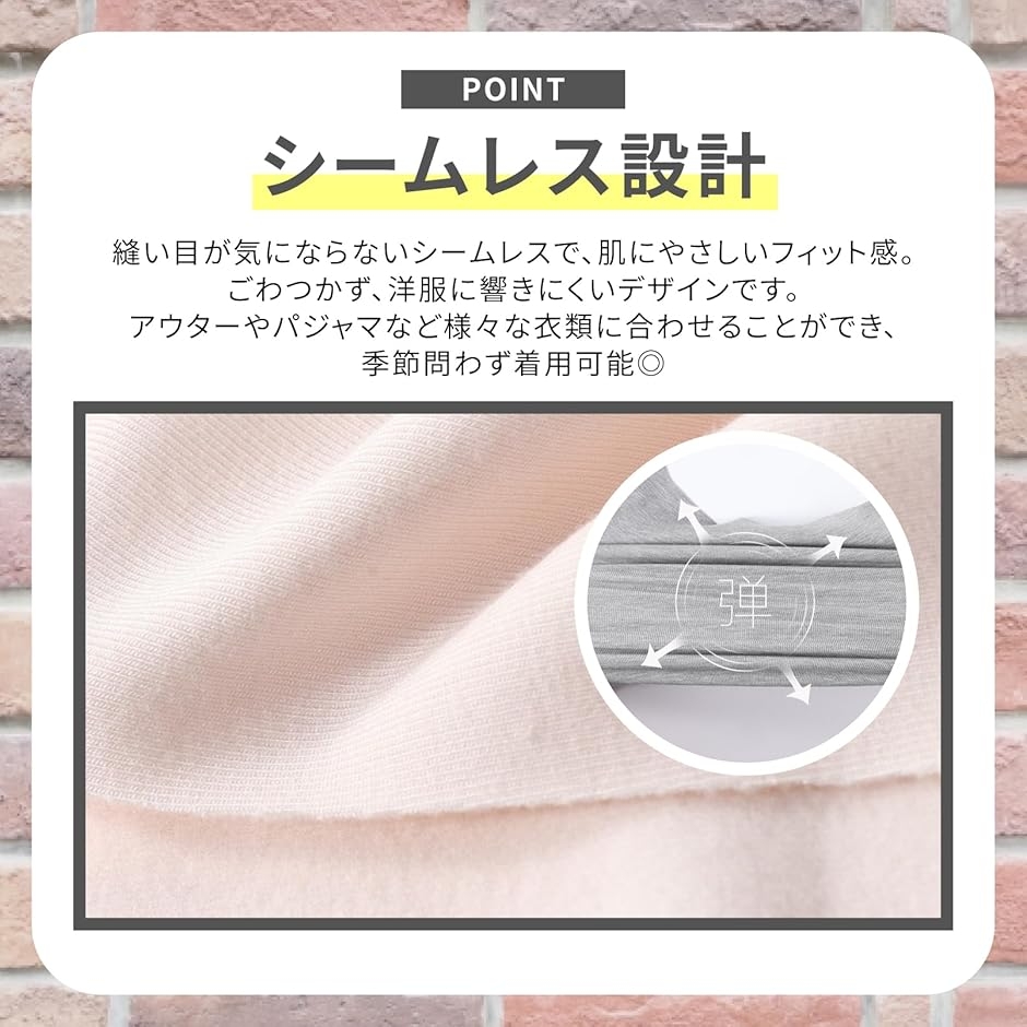 「シームレス設計」縫い目が気にならないシームレスデザインで、肌にやさしいフィット感。