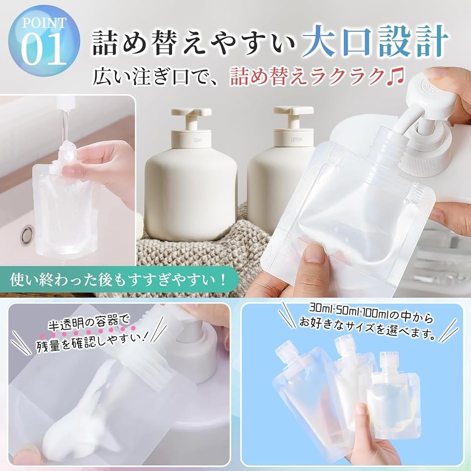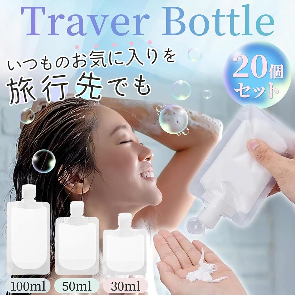 | 商品名 | トラベルボトル トラベルセット シャンプー 洗剤 旅行用 小分け パウチ 詰め替えボトル 20個セット |
