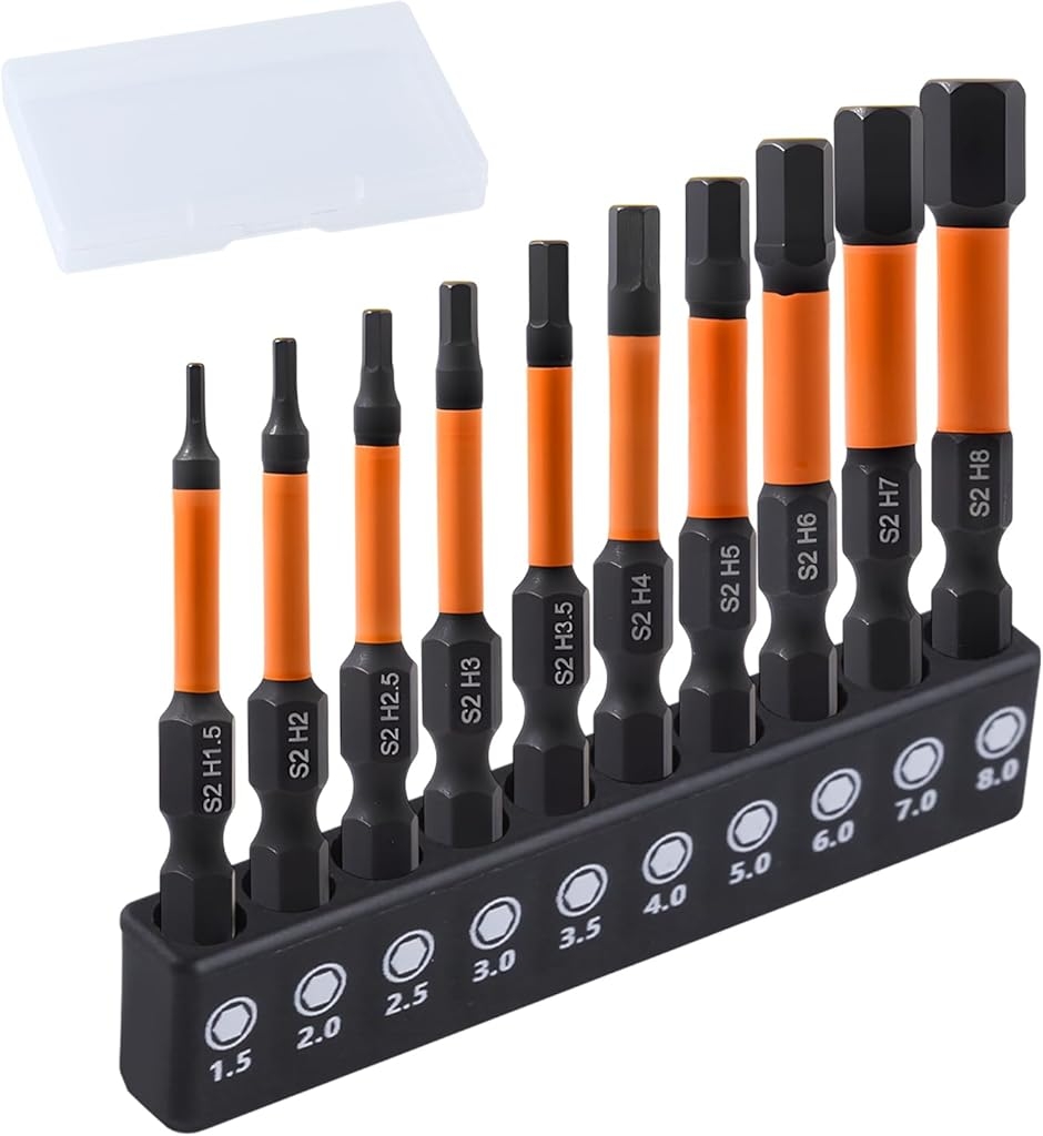 | 商品名 | 六角レンチ ビット 10個 メートル 1.5-8mm 六角レンチドリルビットセット 精密 磁気六角シャンクS2スチール 6.35mm 六角軸 差し替え ねじ締めドリル |