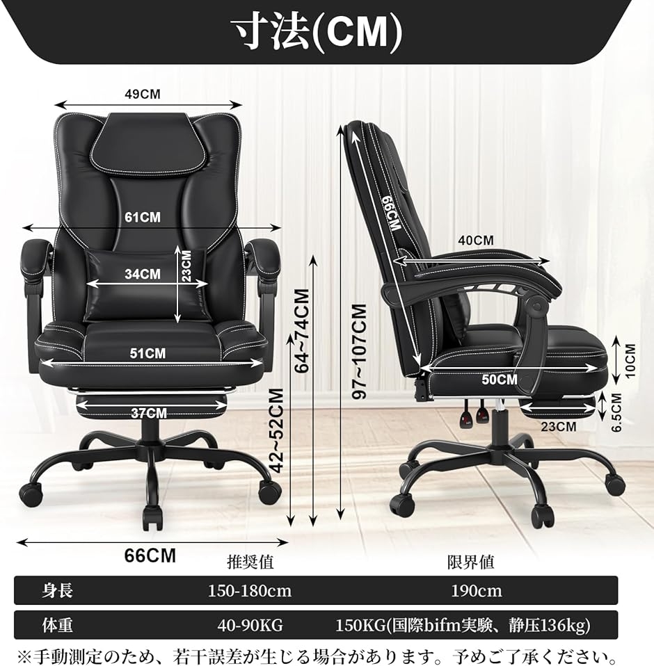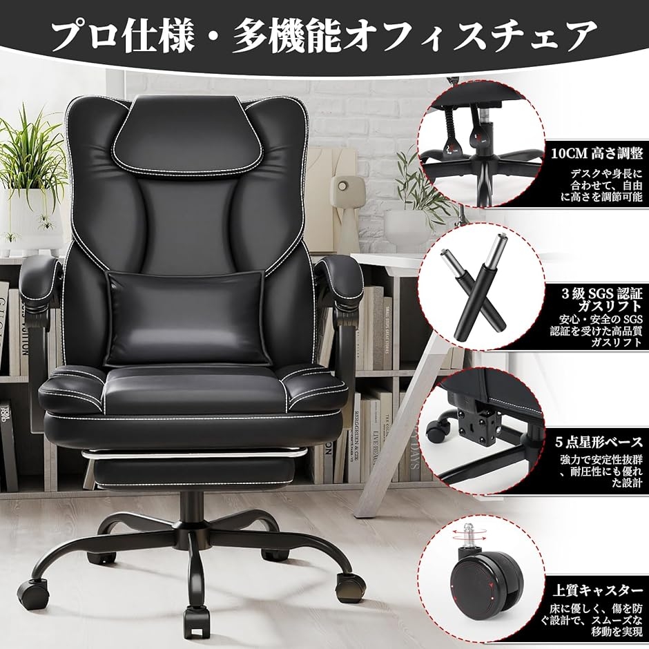 | 商品名 | オフィスチェア デスクチェア 社長椅子 リクライニング 155度無段階 PUレザー 腰サポート ゲーミングチェア pcチェア 椅子 おしゃれ テレワーク 人間工学 フットレスト付き 事務用 ホームオフィス 勉強 在宅勤務 |