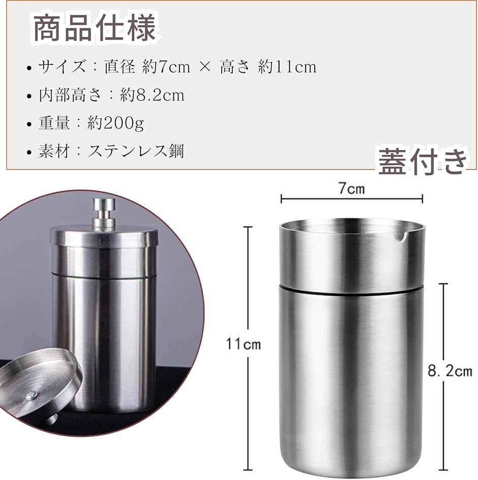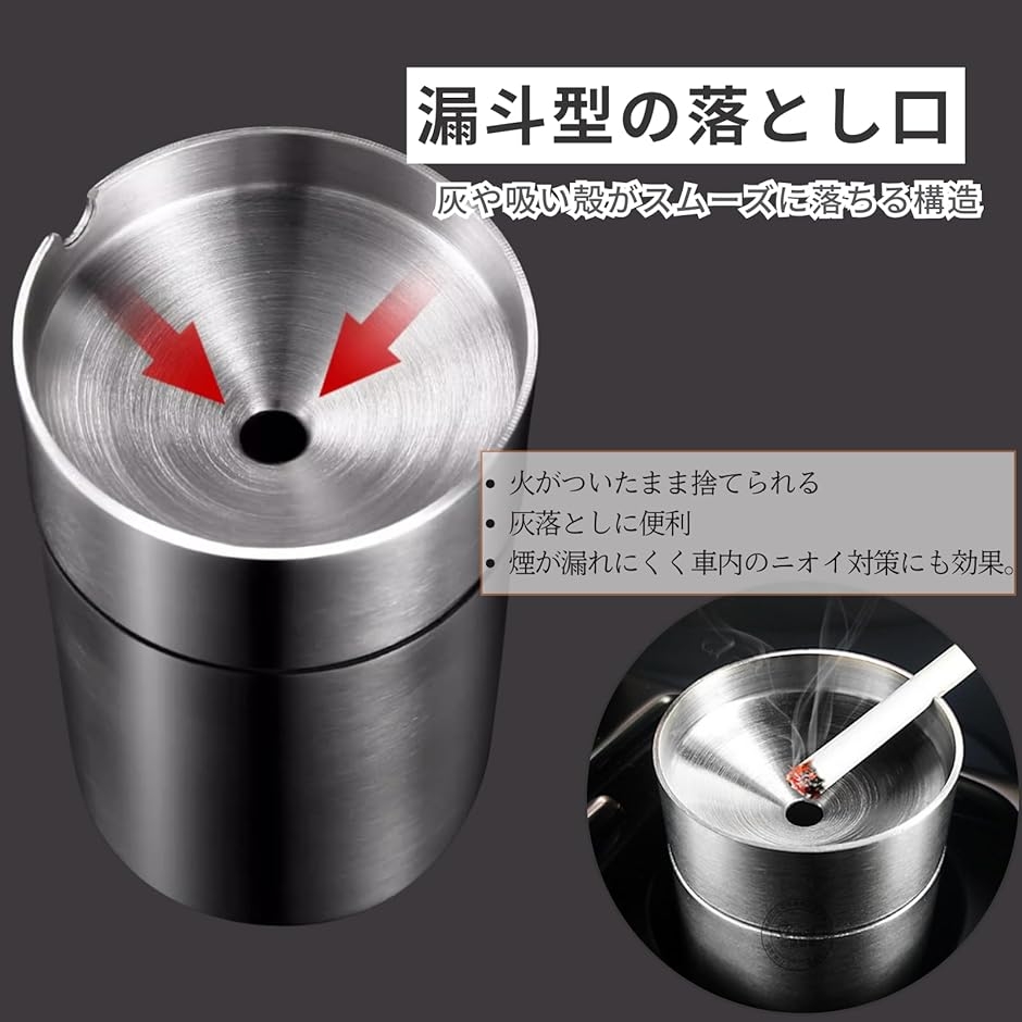 | 商品名 | 車載灰皿 灰皿 車用 蓋付き 大容量 ステンレス製 灰が飛び散らない 携帯灰皿 おしゃれ 消臭 耐熱 はいざら 密閉 丸洗い可能 |