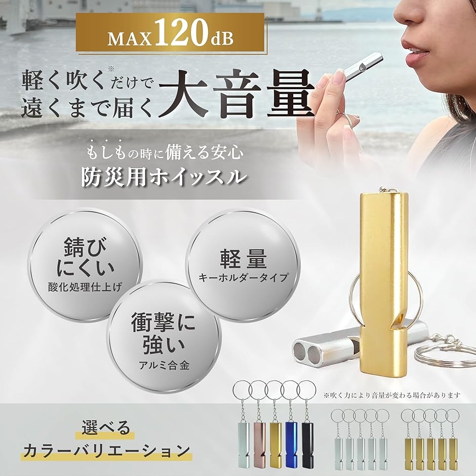 | 商品名 | ホイッスル 防災 大音量MAX120db 軽く吹くだけで遠くまで届く 笛 アウトドア |