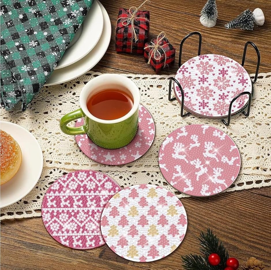 「ダイヤモンドアート コースターの作り方」簡単な手順で、キラキラ輝くピンククリスマス ファンタジーモチーフのコースターが作れます。