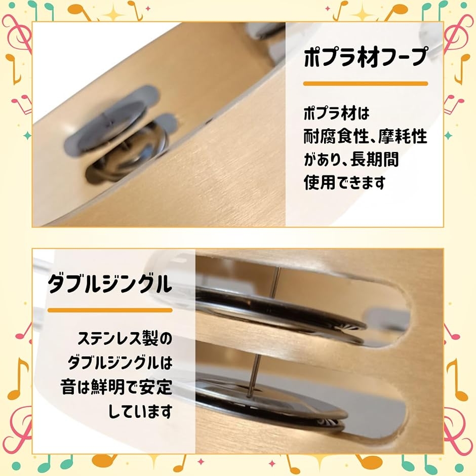 | 商品名 | タンバリン 木製 ステンレス ダブル 手持ち ジングル |