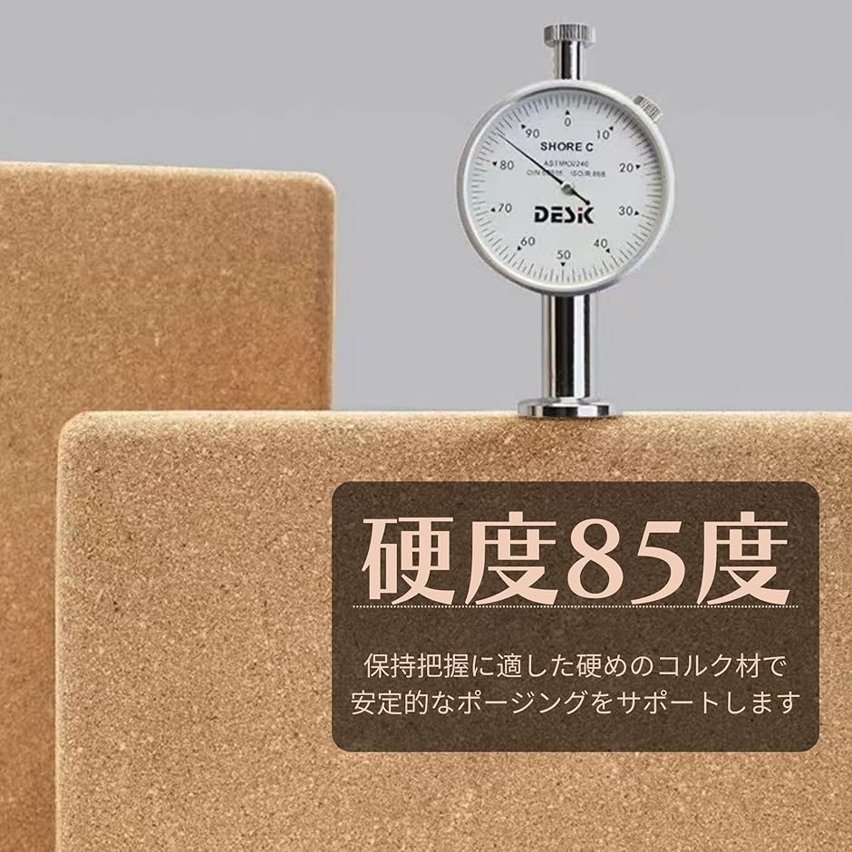 「安定感とサポート力に優れたコルク素材」 本製品は天然コルクを使用したヨガブロックで、しっかりとした硬さと適度な弾力性を両立。