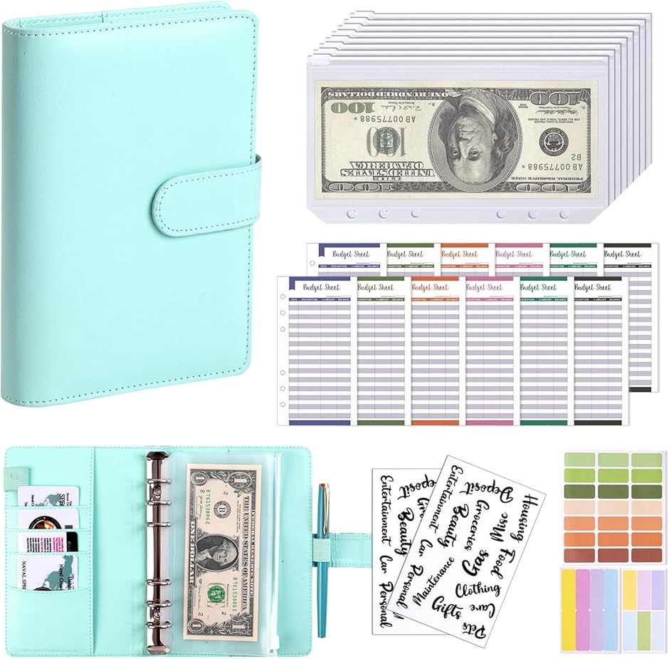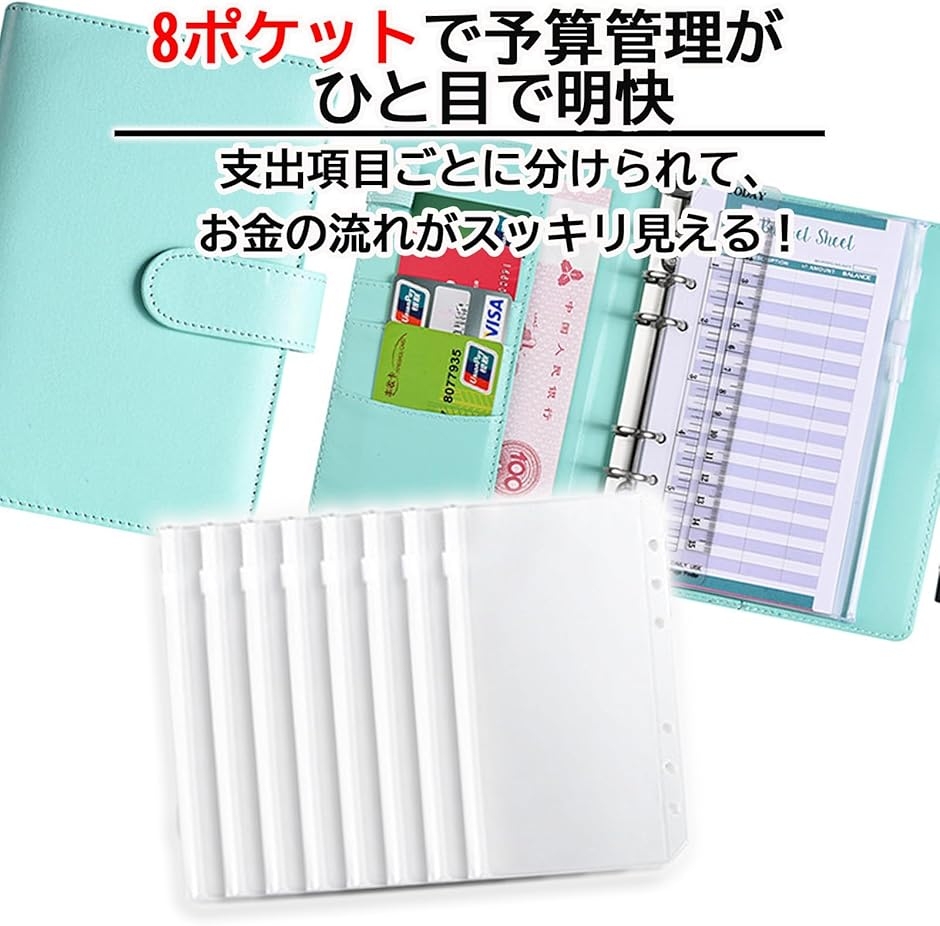 | 商品名 | お金管理ポーチ A6サイズ 家計簿セット 袋分け 貯金ノート 現金管理 ファスナーポケット8枚付き |