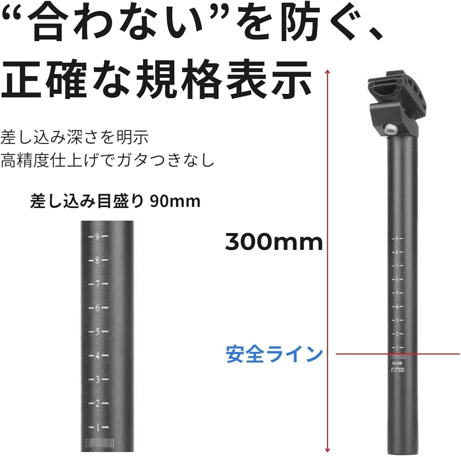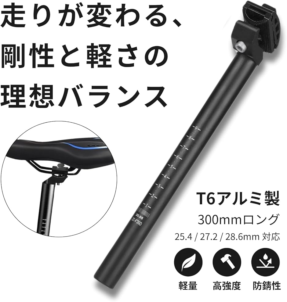 | 商品名 | 自転車 シートポスト T6アルミ製 25.4/27.2/30.9mm 軽量・高耐久 サビ防止 サドルポスト クロスバイク・ロードバイク用 |