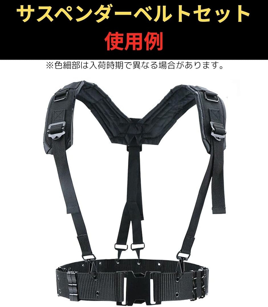 サスペンダーについて「腰装備を快適にサポートするY型サスペンダー構造」本商品は、米軍仕様を踏襲したY字型サスペンダーで、ピストルベルトやタクティカルベルトに対応した設計です。