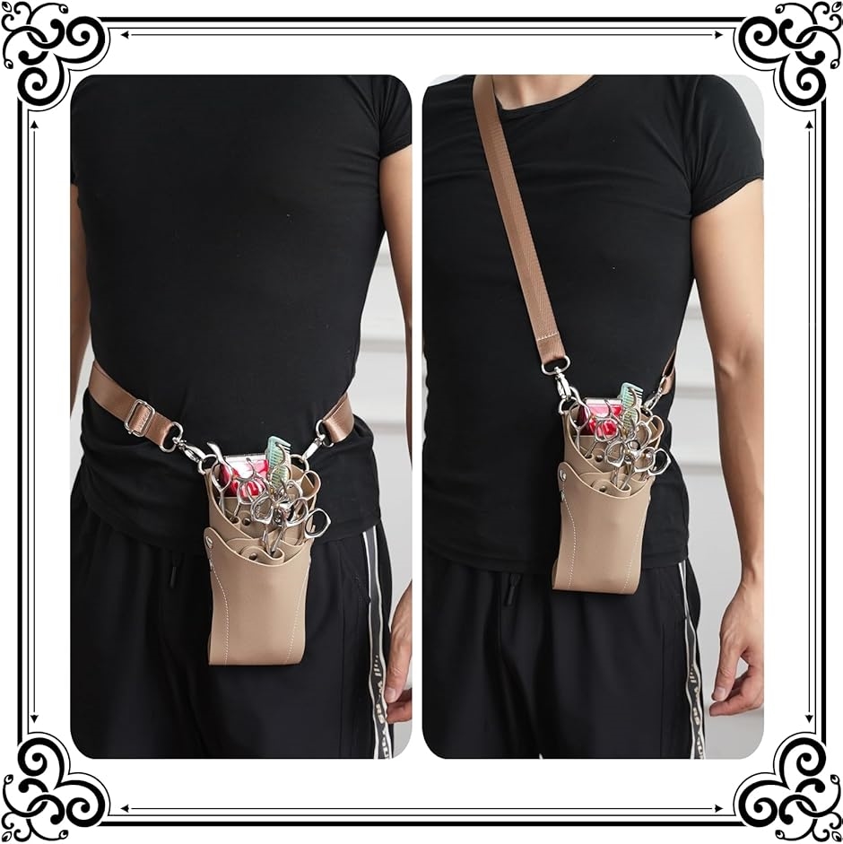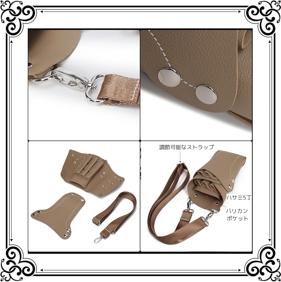 | 商品名 | シザー ケース 5丁 美容師 ハサミ トリマー プロ 仕様 ウエスト バッグ PU レザー コンチョ |