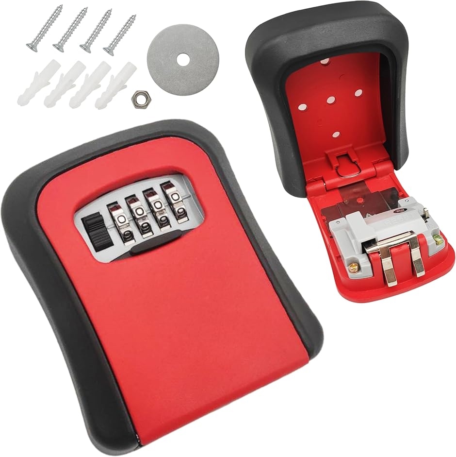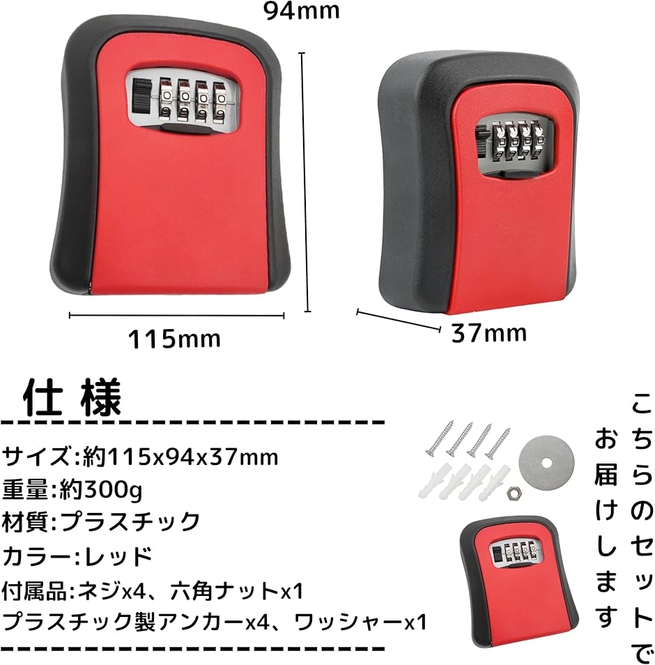 「仕様」 サイズ:約115x94x37mm 重量:約400g 材質:亜鉛合金+樹脂カバー カラー:レッド 付属品:取り付け用ビス、アンカー、簡易工具一式